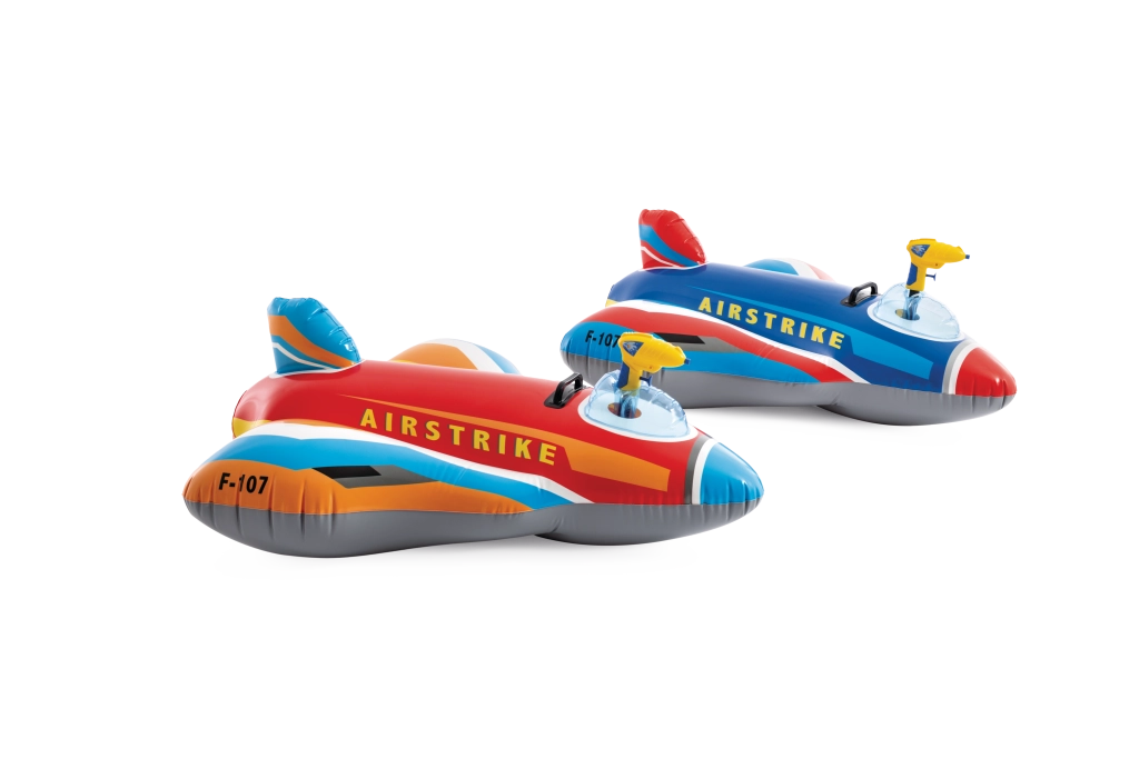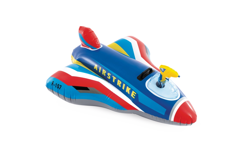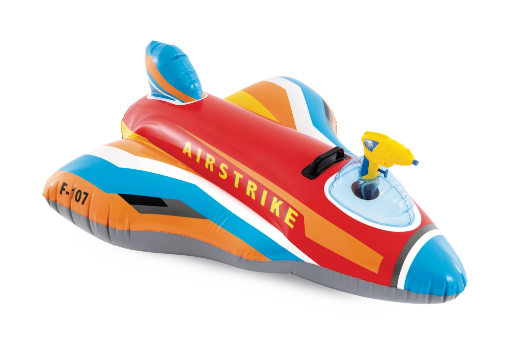 Il jet gonfiabile AIRSTRIKE F-107 trasforma ogni piscina in un aeroporto d’azione. Grazie alle ampie ali e allo stabilizzatore posteriore è molto stabile e confortevole per i bambini più piccoli. La pistola ad acqua integrata in cabina consente di spruzzare facilmente e garantisce un divertimento senza fine.