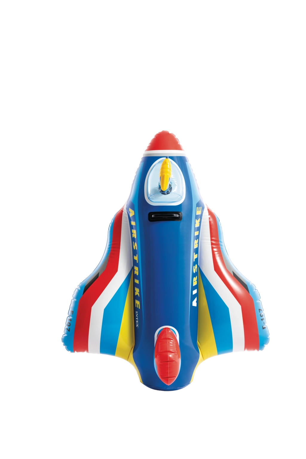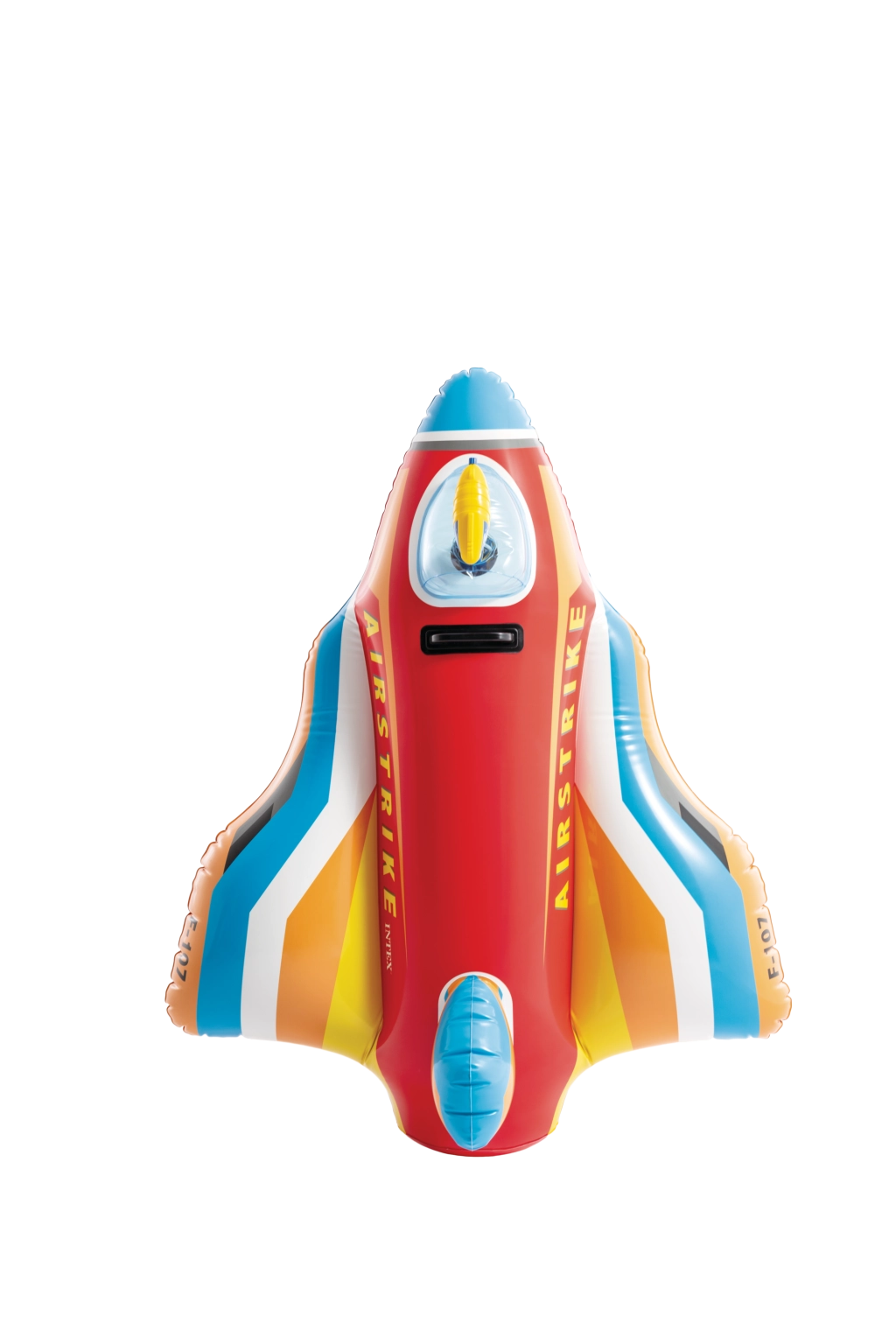 La struttura resistente in PVC di qualità e la maniglia robusta assicurano un gioco più sicuro e un migliore controllo durante la guida. I colori vivaci in combinazione di rosso, blu, giallo e bianco e le scritte AIRSTRIKE e F-107 conferiscono al gioco un aspetto accattivante che cattura subito l’attenzione dei bambini.