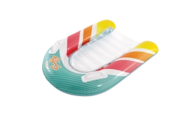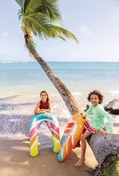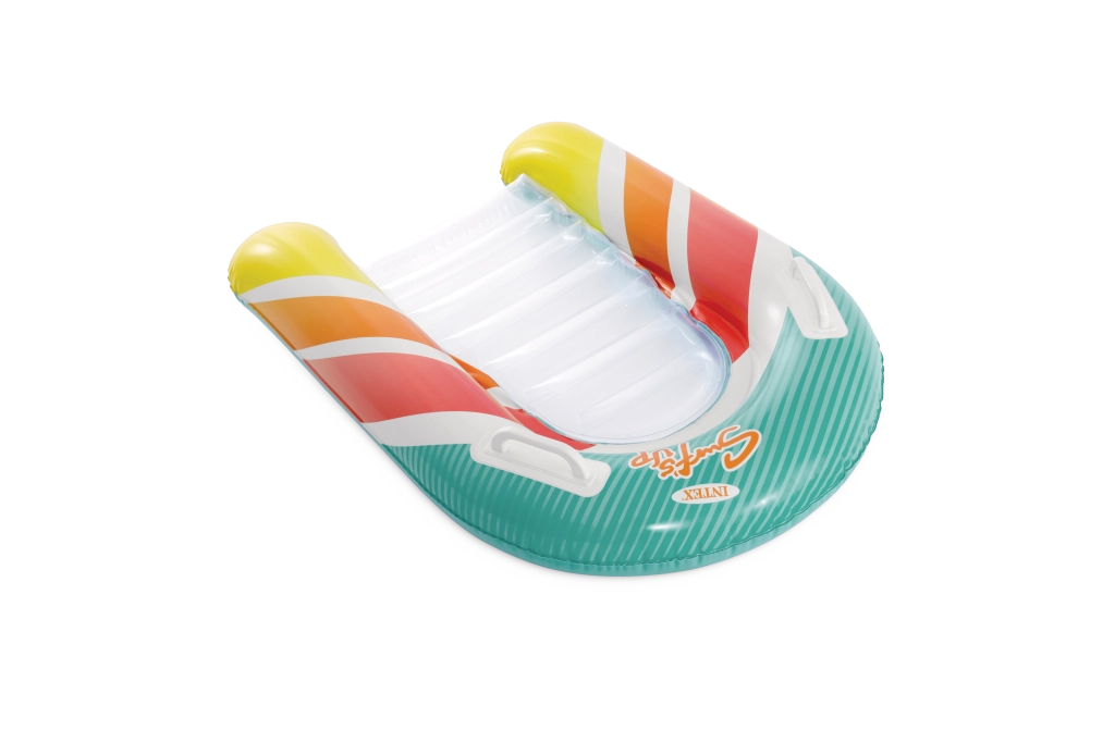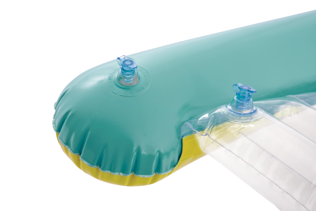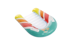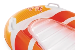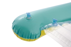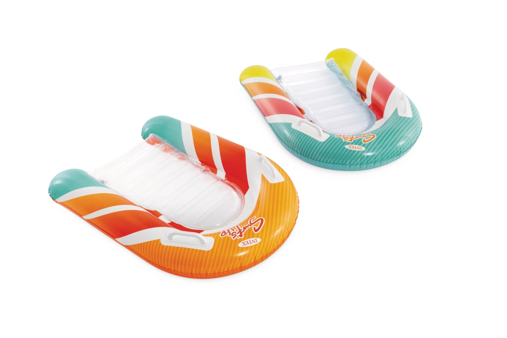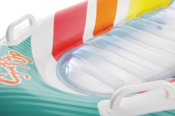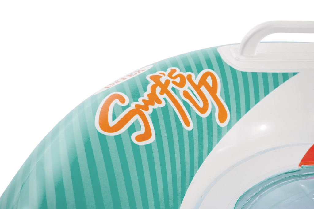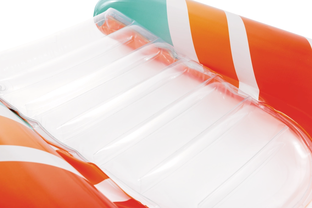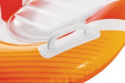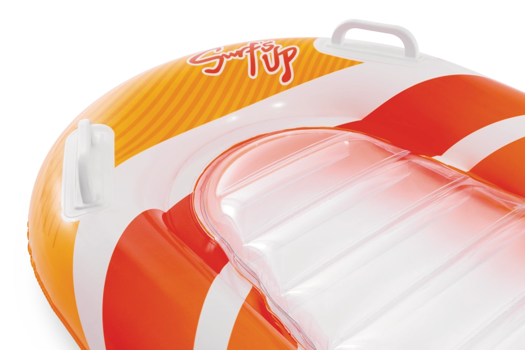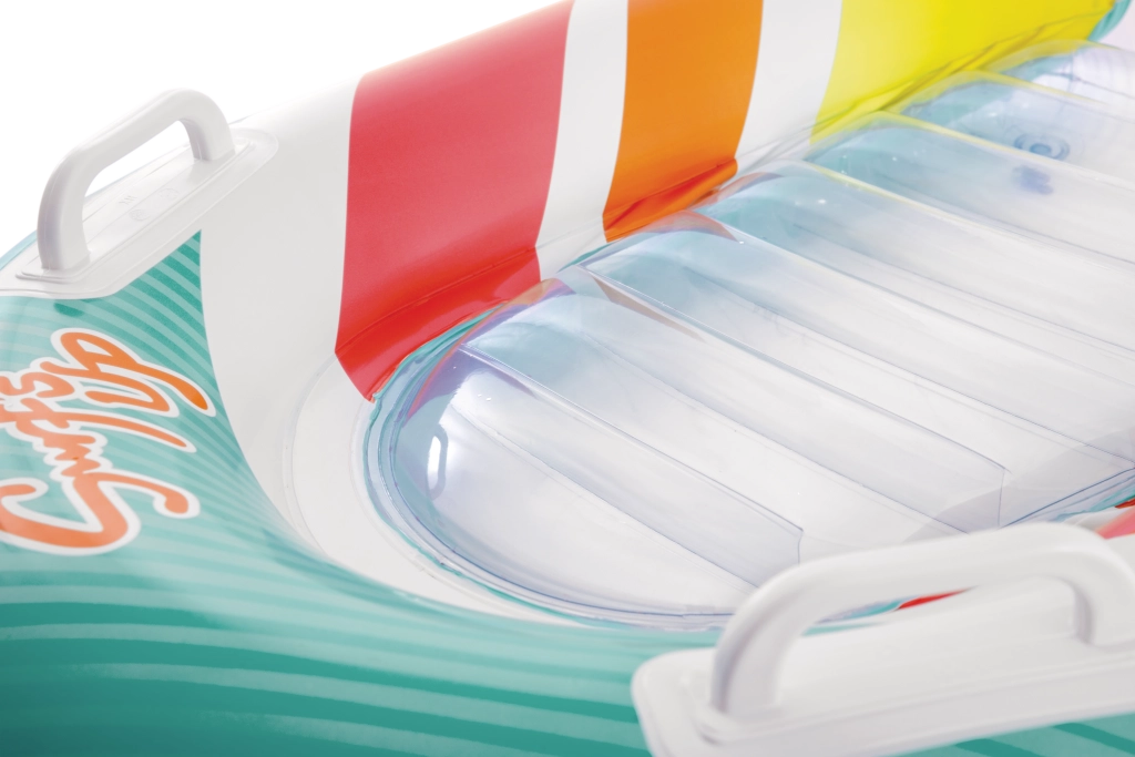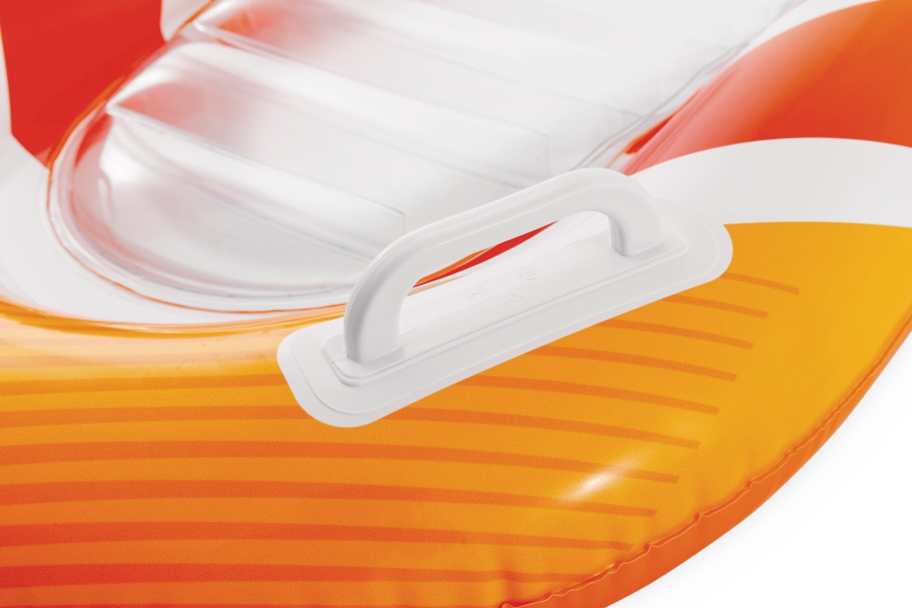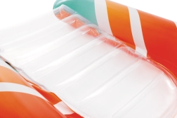 La seduta trasparente e a coste offre comfort e una migliore distribuzione del peso per un piacevole relax sull’acqua. Le valvole di sicurezza evitano le perdite d’aria e facilitano il gonfiaggio e lo sgonfiaggio. Il materassino è disponibile in due varianti di colore – con strisce arancioni o verdi – così ogni bambino può scegliere il proprio stile preferito.
