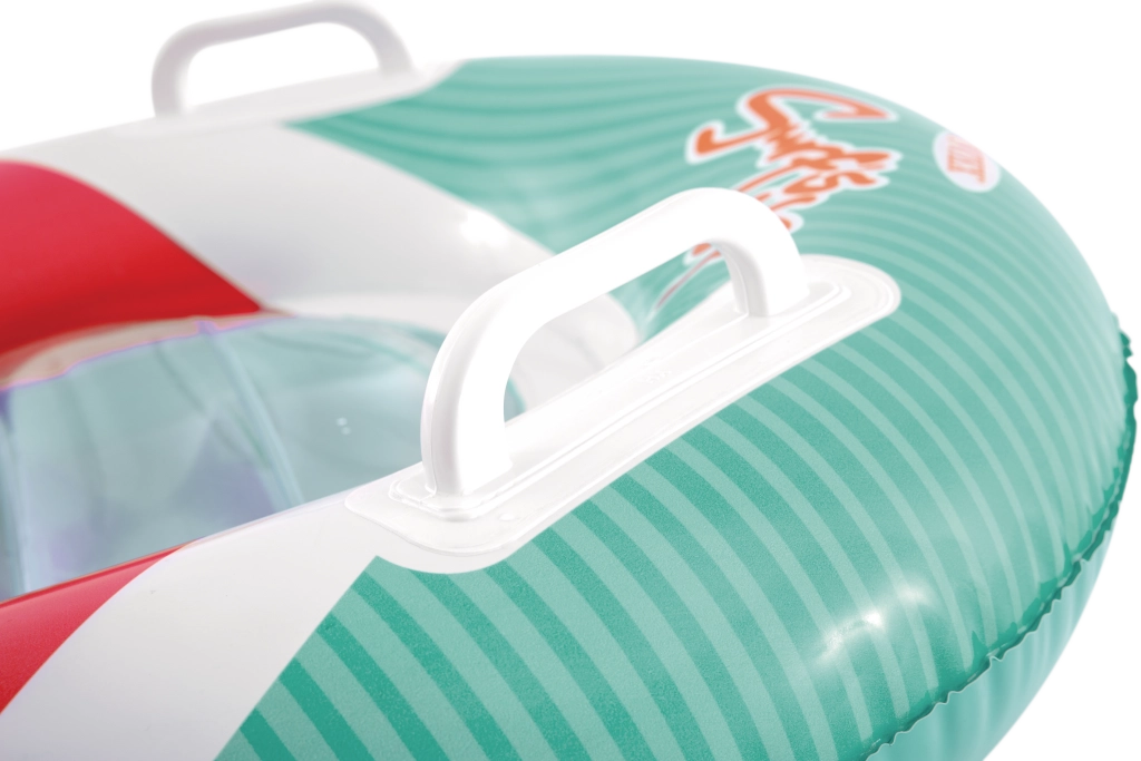 Il materassino gonfiabile con maniglie Surf's Up Rider unisce un design giocoso a righe a una struttura studiata a forma di piccolo gommone. Due camere laterali aumentano la stabilità, mentre le impugnature integrate offrono ai bambini una presa sicura durante il divertimento tra le onde. Il materiale in PVC resistente sopporta l’intenso uso estivo ed è facile da pulire.