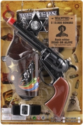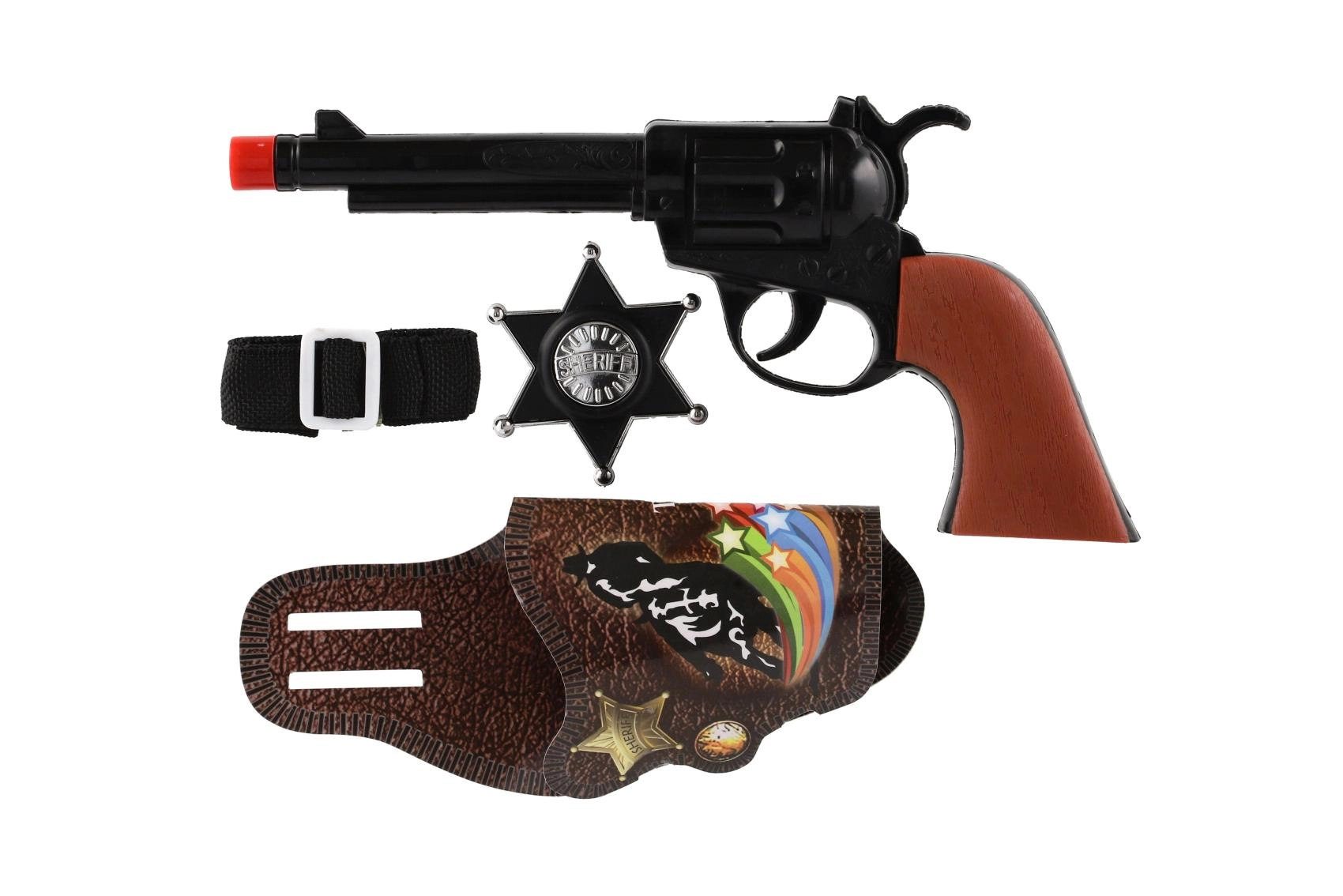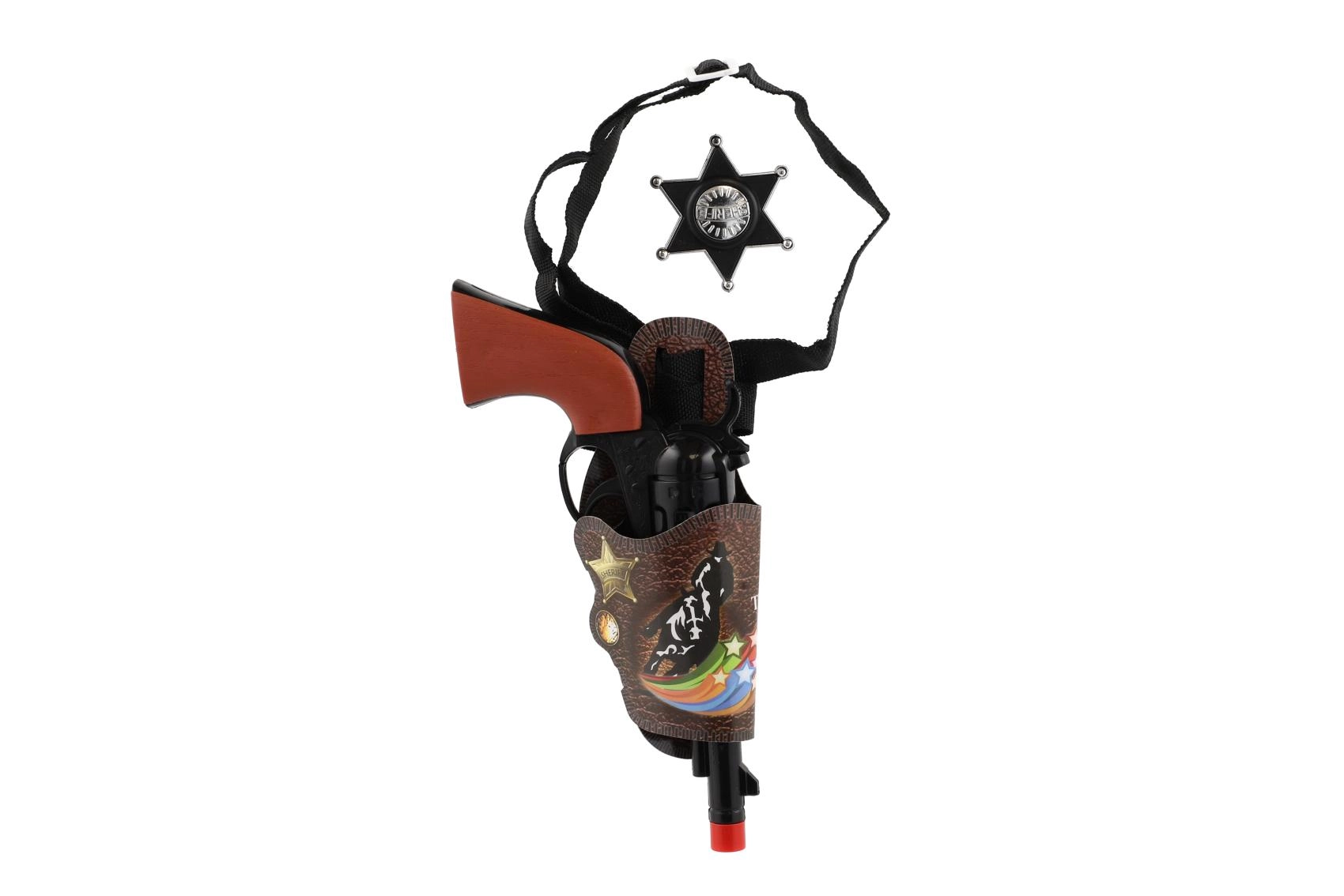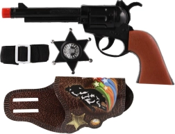 La pistola giocattolo a scatto con accessori è ideale per giochi da cowboy e sceriffo. È in plastica leggera, emette il tipico suono a scatto senza proiettili quando si preme il grilletto e, grazie alla lunghezza di circa 22 cm, si impugna bene dalle mani dei bambini. La confezione include accessori a tema che stimolano la fantasia e ampliano le possibilità di gioco.