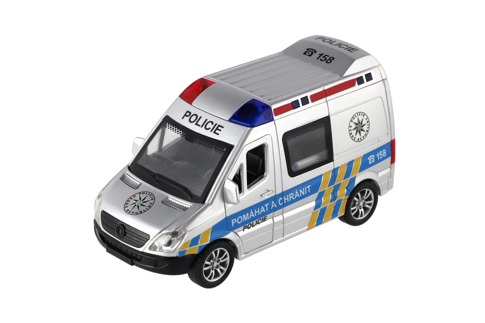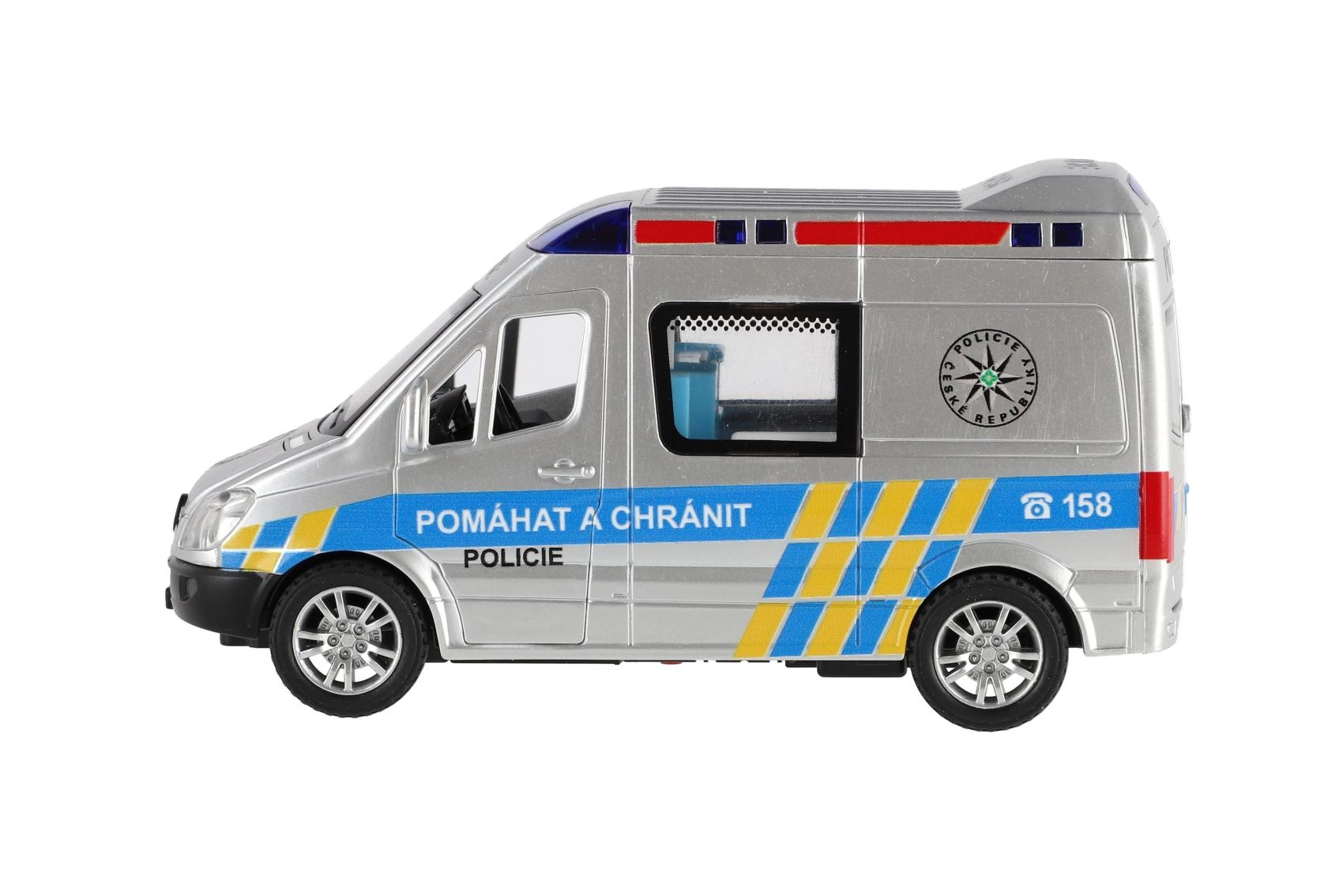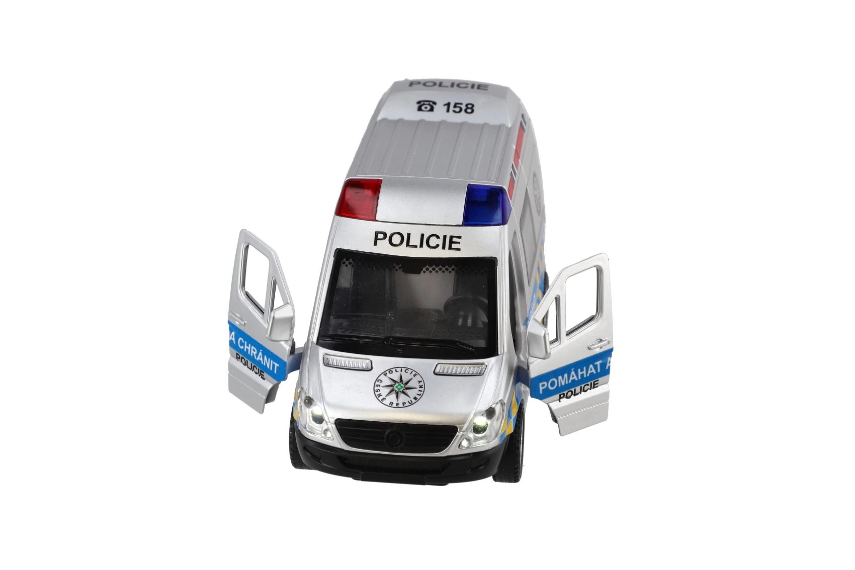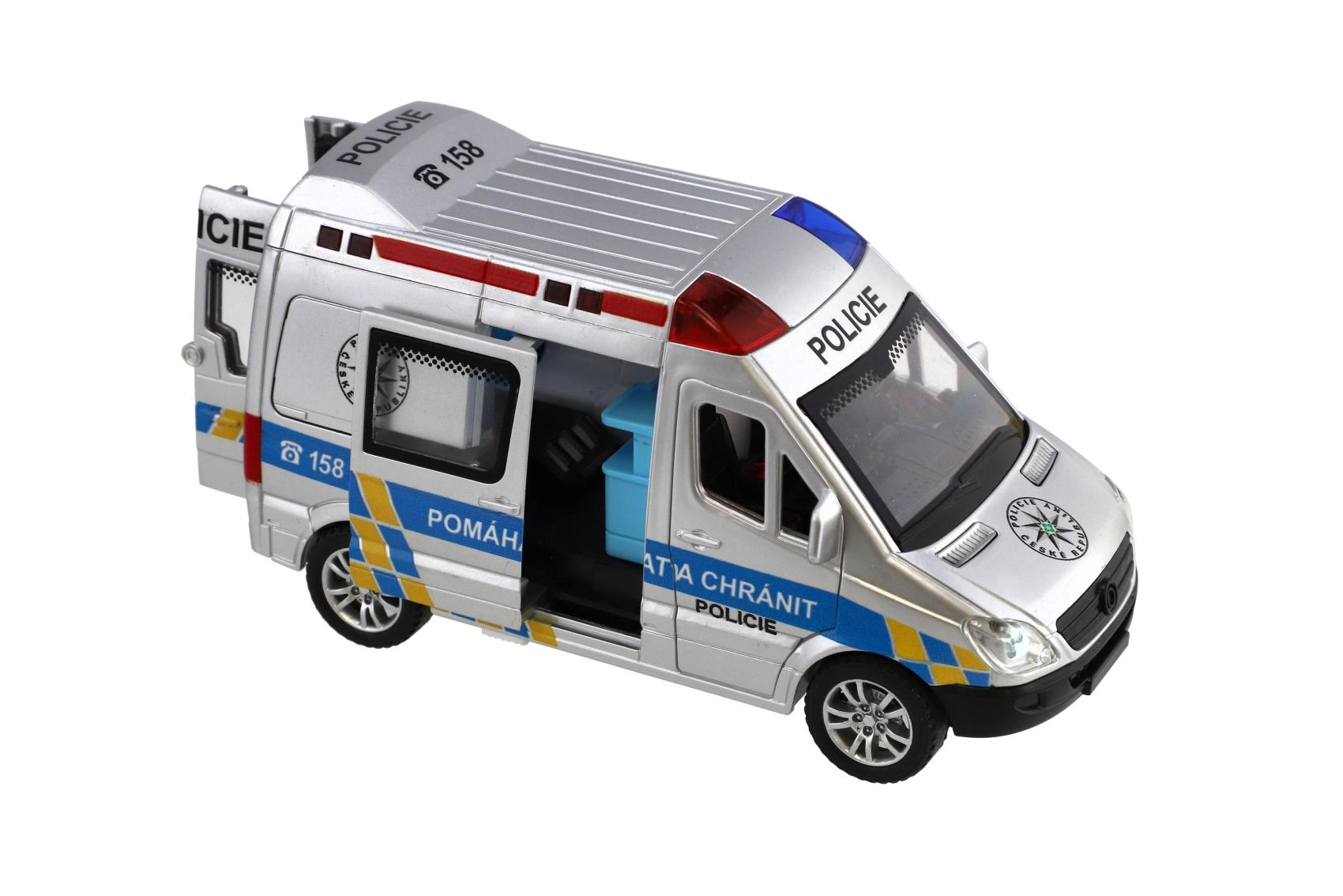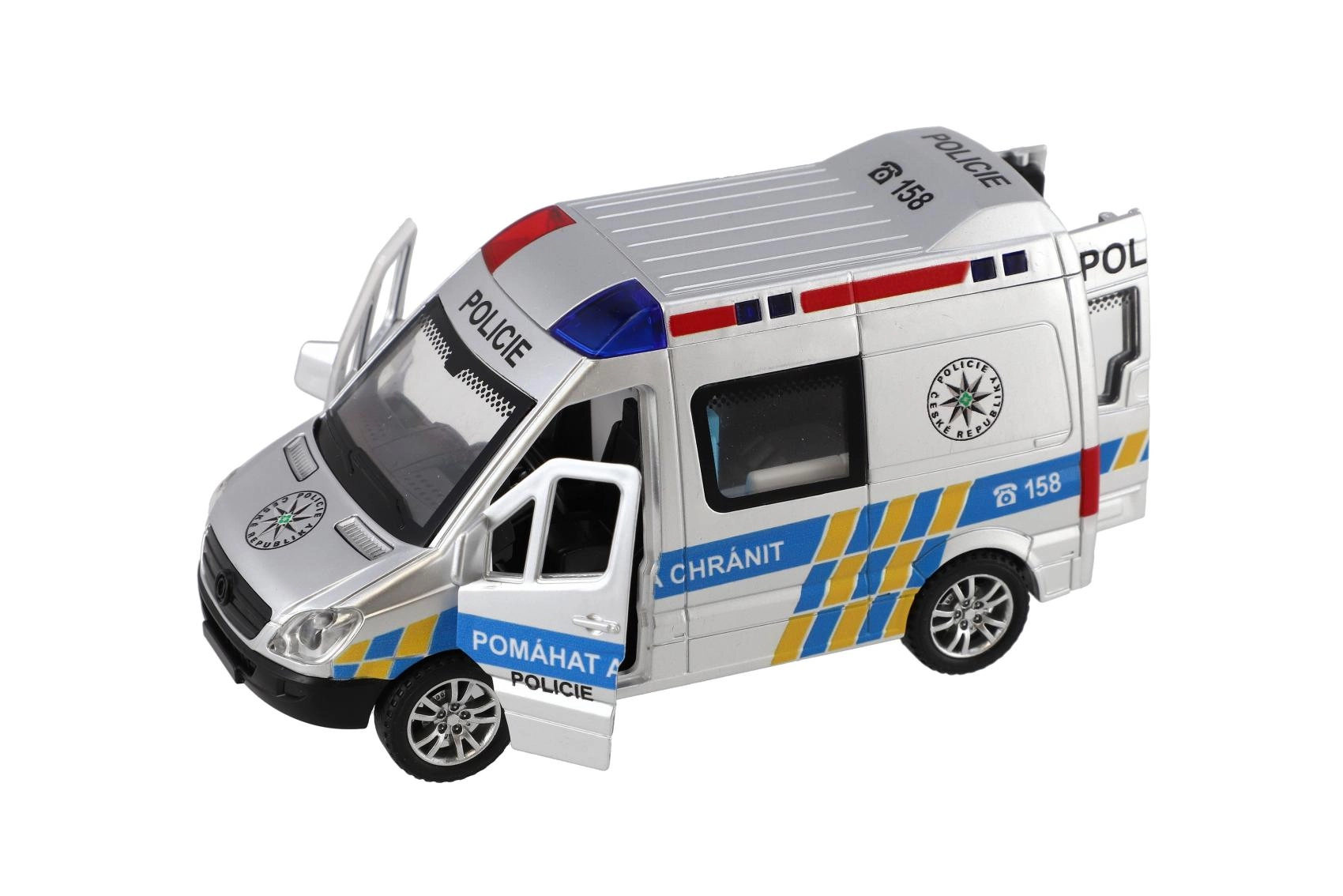 L'auto della polizia in plastica ispirata alla Polizia della Repubblica Ceca entusiasmerà i piccoli tutori della legge. Offre effetti luminosi e sonori, meccanismo a retrocarica per una facile partenza e porte apribili per un gioco più realistico.