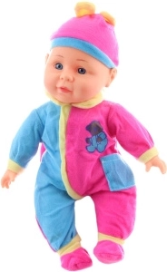 Dolcissima bambolina con corpicino morbido che, se premuto, emette suoni di risata, pianto e le parole mamma, papà. Indossa un pigiamino colorato con chiusura in velcro facile da togliere. Ideale per bambini dai 3 anni e perfetta per sviluppare fantasia e capacità di cura.