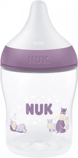 Il biberon NUK Perfect Match è stato progettato per avvicinarsi il più possibile all’allattamento al seno. Il ciuccio, con la tipica forma NUK, imita il capezzolo materno, offre un ampio supporto per le labbra e spazio sufficiente per i movimenti di suzione naturali della lingua e della mandibola. Grazie al design studiato, il bambino non entra in contatto con parti dure in plastica.