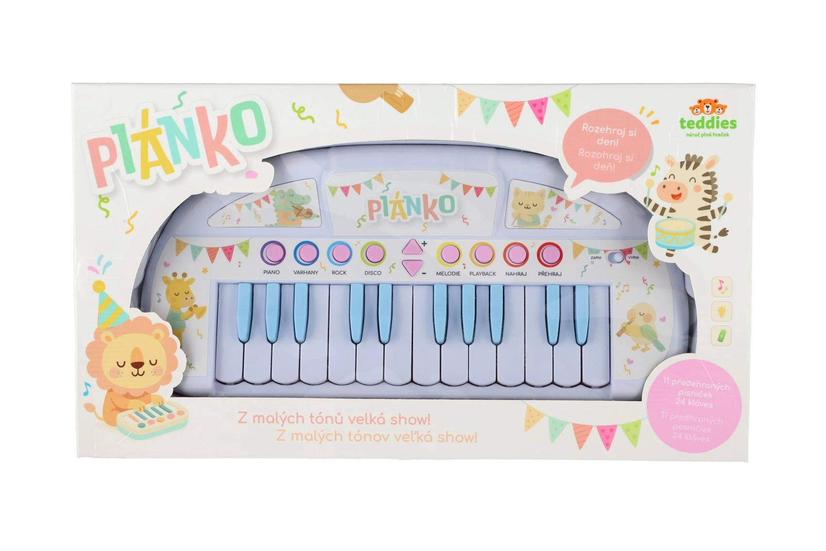 Scopri il mondo della musica con la pianola per bambini con animaletti lunga 35 cm. Grazie ai pulsanti intuitivi, ai tasti e ai divertenti suoni degli animali e alle melodie, i bambini assimilano rapidamente le basi del ritmo e allenano la motricità fine. Il giocattolo è leggero, resistente e sicuro per l’uso quotidiano.