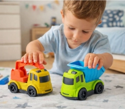 Divertente set di camioncini da costruzione per bambini con autocarro ribaltabile e mini escavatore in resistente bioplastica. Grazie alla vasca mobile e alla benna girevole, i bambini possono imitare facilmente i veri lavori in cantiere, sviluppando motricità fine, creatività e immaginazione durante il gioco in casa e all'aperto.
