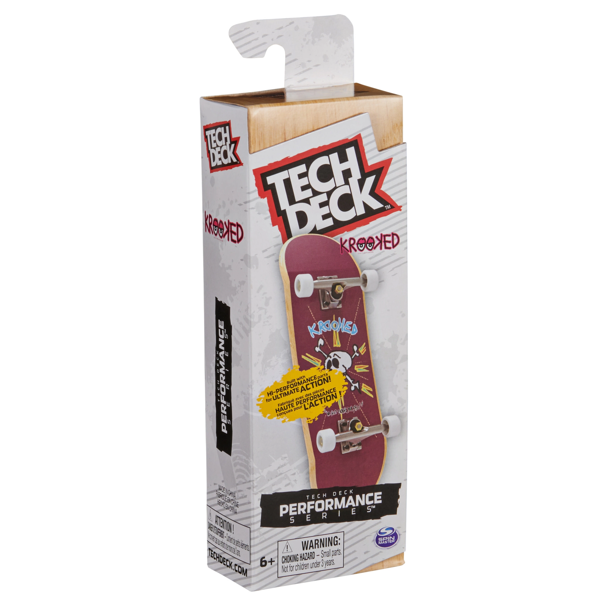 Scopri il fingerboard realistico della linea Performance del marchio Tech Deck con grafica KROOKED. La tavola in legno, il grip in schiuma, i bushing in gomma e le ruote più morbide e aderenti garantiscono maggiore controllo, precisione e una sensazione di guida simile a uno skateboard reale – ideale per imparare ed eseguire trick con le dita a casa e in viaggio.