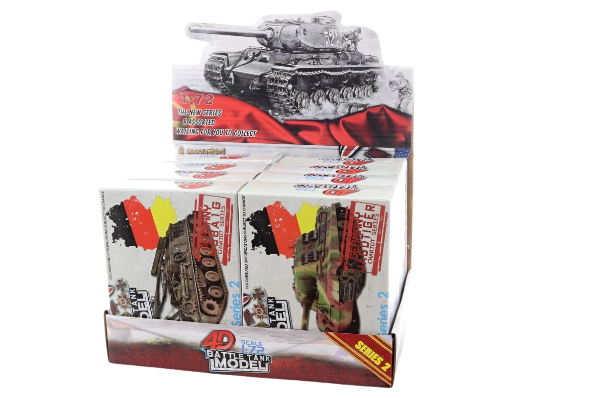 Ogni confezione propone più varianti di carri armati – il modello specifico viene fornito in base alla disponibilità di magazzino. Grazie alle dimensioni compatte, il kit è adatto anche ai viaggi o come piccolo regalo.