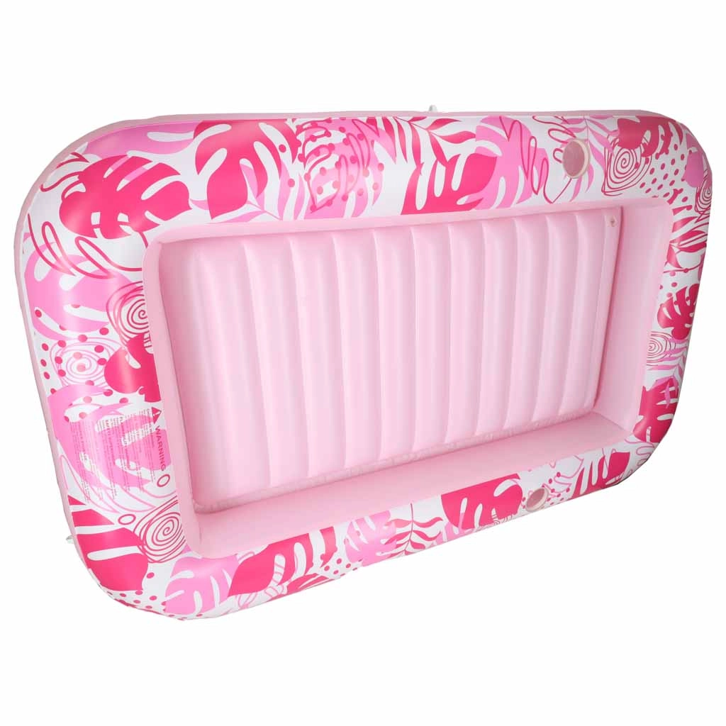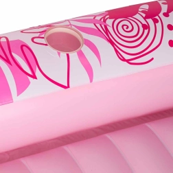 Due portabicchieri integrati tengono sempre a portata il tuo rinfresco, mentre la facile maneggevolezza e portabilità lo rendono un compagno affidabile per ogni uscita estiva. Il design rosa e bianco con motivo tropicale aggiunge stile al tuo relax.