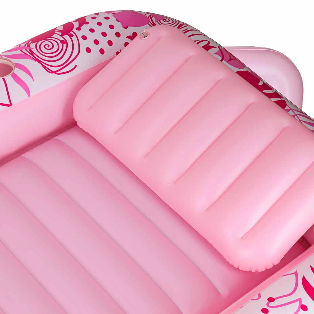 Goditi l’estate al massimo con questo elegante materassino gonfiabile con cuscino removibile. Offre abbronzatura confortevole, bordo stabile, due portabicchieri e gonfiaggio rapido. Ideale per piscina, lago e mare calmo.