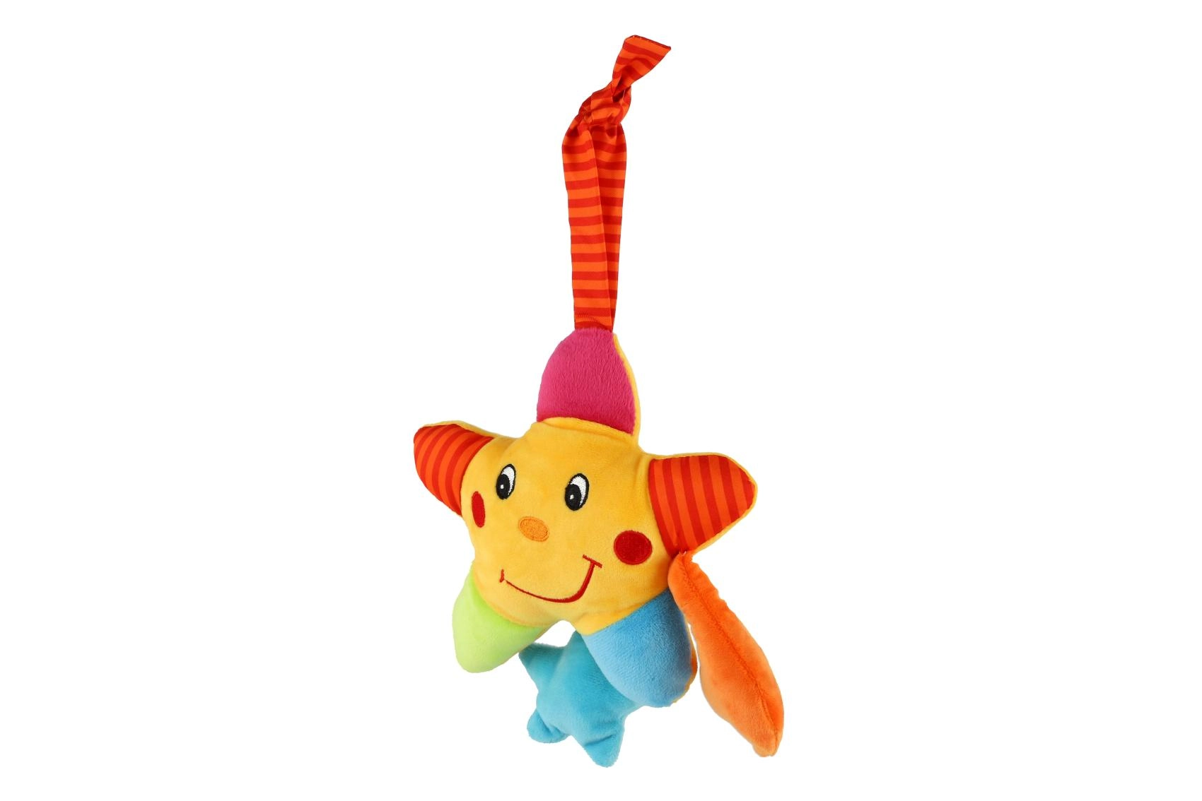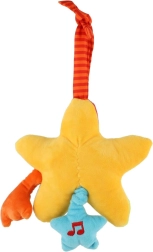 Dolcissima stellina di peluche da appendere con carillon a carica che farà felici i bebè dai 3 mesi. Tirando il cordoncino riproduce una melodia delicata e rilassante, favorendo un sonno tranquillo e intrattenendo anche in viaggio. Morbido peluche vellutato, colori allegri e un viso sorridente invitano al tocco e all’osservazione. La pratica asola per appenderla permette di fissarla facilmente a lettino, passeggino o seggiolino auto.