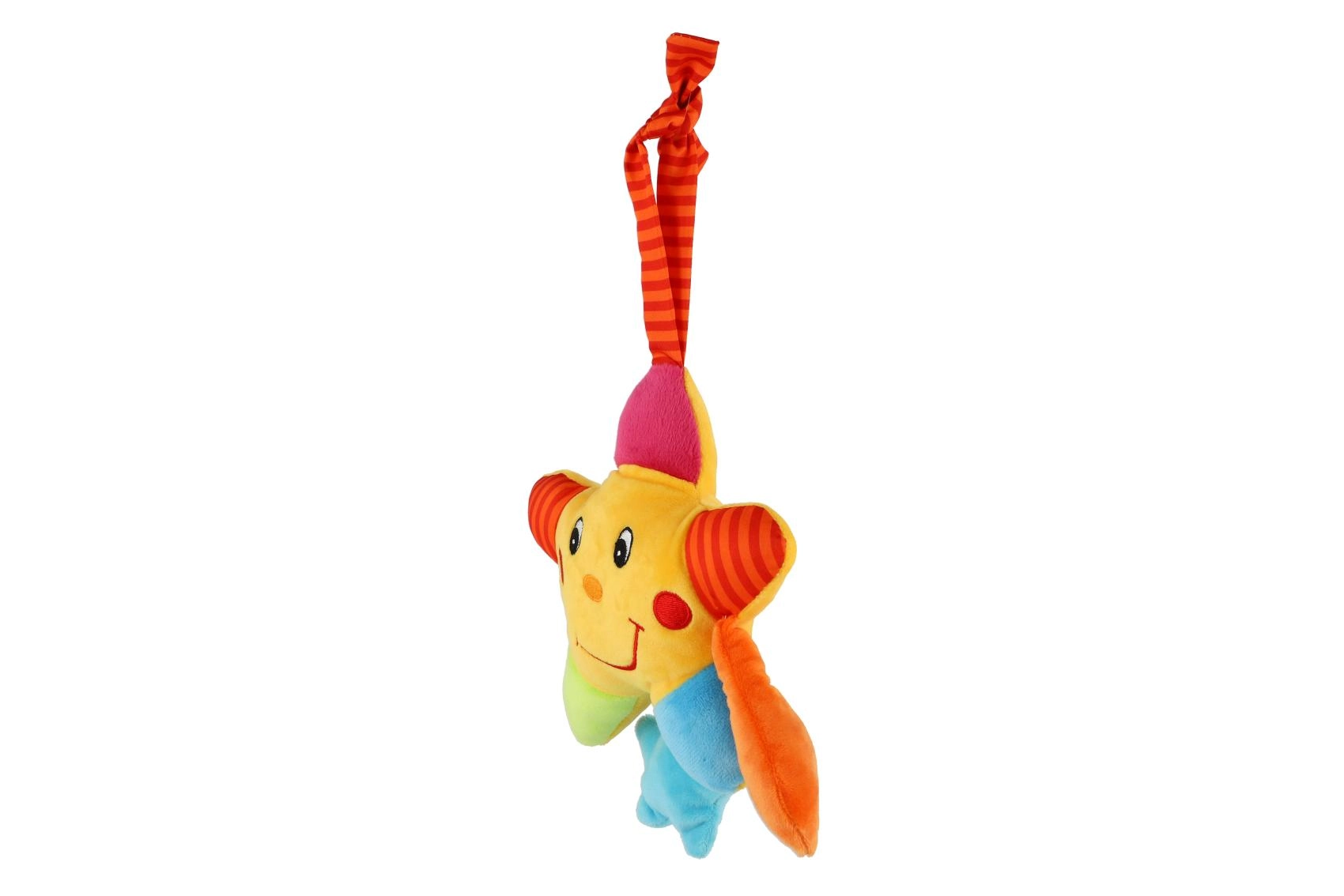 Grazie all’asola in tessuto, il giocattolo si fissa facilmente a passeggino, lettino o seggiolino auto – ideale a casa e in viaggio.