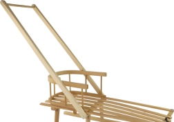 La slitta in legno con comodo schienale unisce un design senza tempo a una realizzazione funzionale. Leggera ma con una struttura in legno robusta, garantisce lunga durata e maneggevolezza. Le guide metalliche sul fondo assicurano una scivolata uniforme sulla neve e una maggiore resistenza su terreni vari.