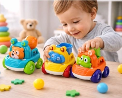 Adorabile set di tre camioncini da costruzione per i più piccoli, con colori vivaci, forme arrotondate e sicure e simpatici animaletti. I bambini si divertiranno con la guida push-and-go, elementi mobili e una giocosa introduzione al mondo delle macchine e degli animali. Ideale dai 18 mesi per sviluppare motricità fine, coordinazione e fantasia.