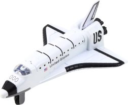 Scopri il divertimento con lo shuttle in metallo dotato di motore a retrocarica (pull-back), che parte da solo dopo essere stato tirato indietro. Il design realistico dello shuttle, la parte superiore apribile per scenari di gioco più ampi e la robusta combinazione di metallo e plastica rendono questo giocattolo una scelta perfetta per i piccoli fan dello spazio.