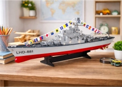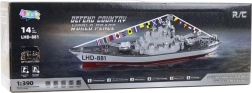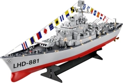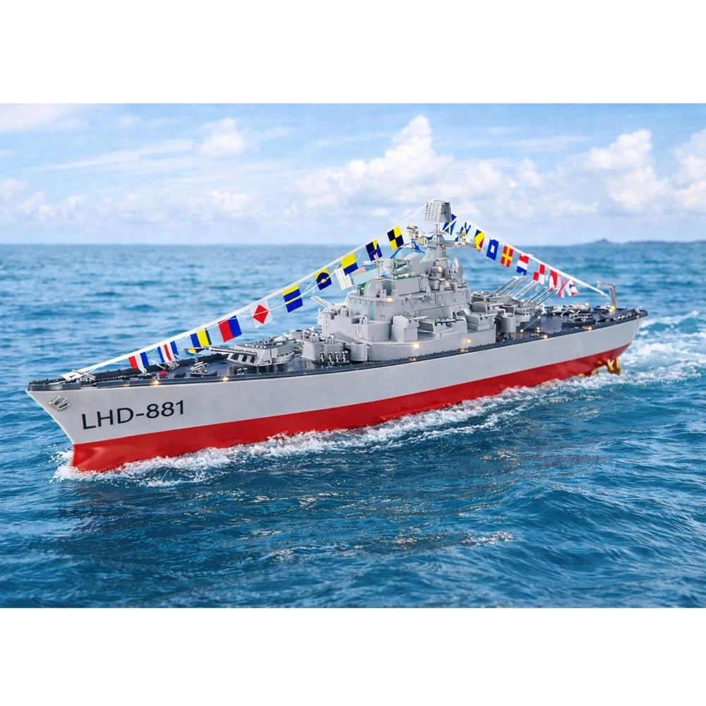Questa imbarcazione RC dettagliata riproduce fedelmente la silhouette di una moderna nave militare. Grazie alla doppia propulsione è stabile, agile e raggiunge velocità fino a 10 km/h. Il pratico radiocomando consente marcia avanti/indietro e sterzate fluide a sinistra/destra, per un controllo sicuro in ogni momento.