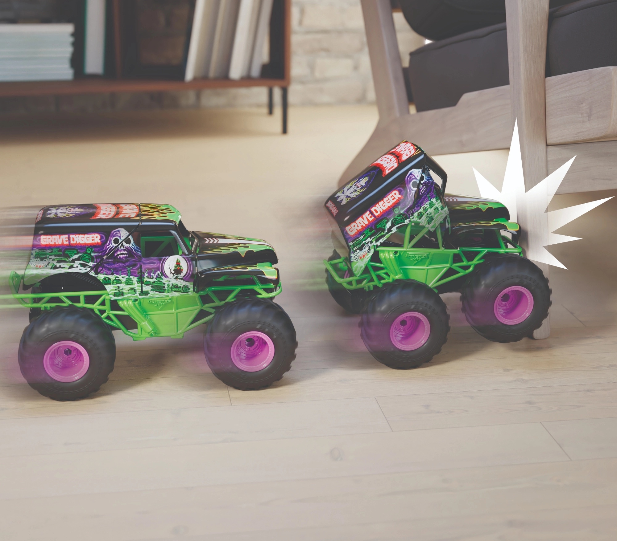 L’icona leggendaria di MONSTER JAM arriva nella tua collezione: GRAVE DIGGER con grafica nero-verde accattivante, pneumatici enormi e telaio rialzato. La scala 1:15 offre un ottimo equilibrio tra dimensioni e maneggevolezza, mentre i battistrada in gomma garantiscono trazione su asfalto, moquette e superfici più grezze.