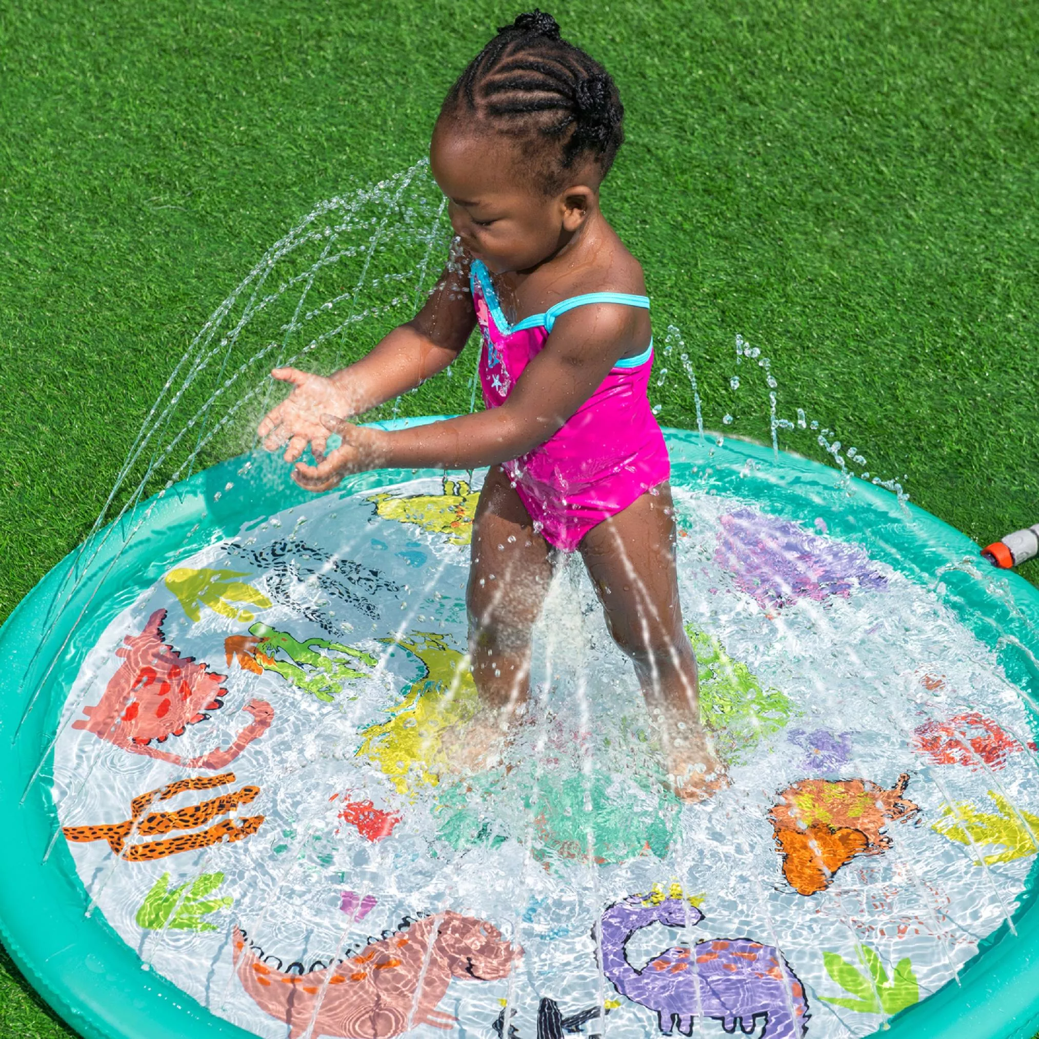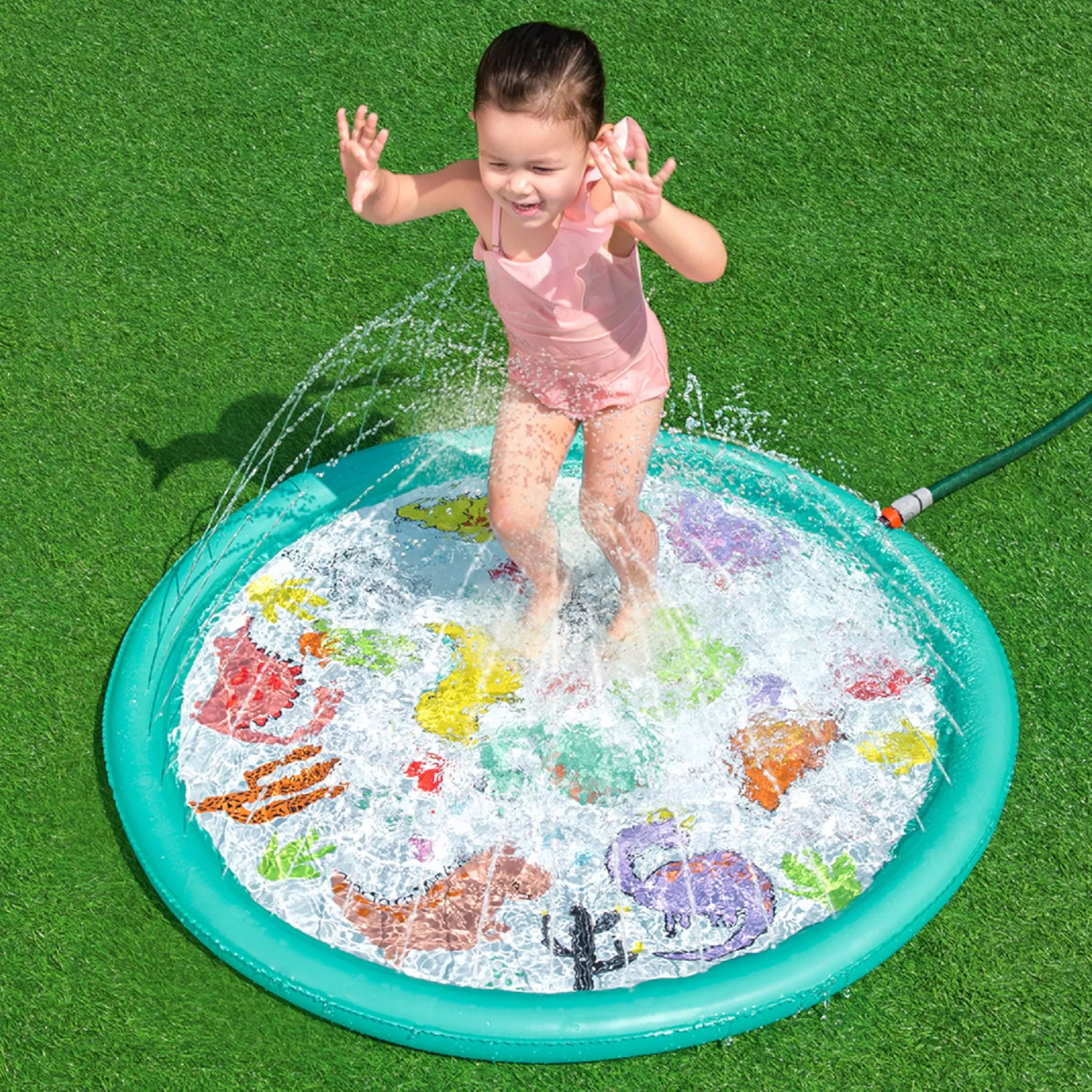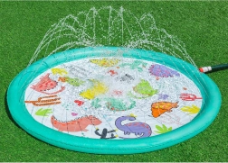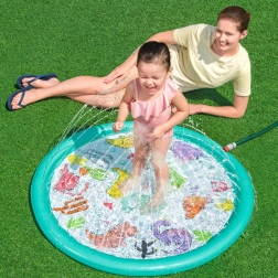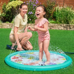 Questo tappetino spruzzatore gonfiabile offre ai bambini tanto divertimento, freschezza e gioco attivo all’aperto durante le giornate calde. Basta collegarlo al tubo, regolare la pressione dell’acqua e gli ugelli lungo il bordo creeranno una delicata fontana d’acqua con altezza del getto regolabile. La superficie bassa è ideale per giochi sicuri e schizzi.