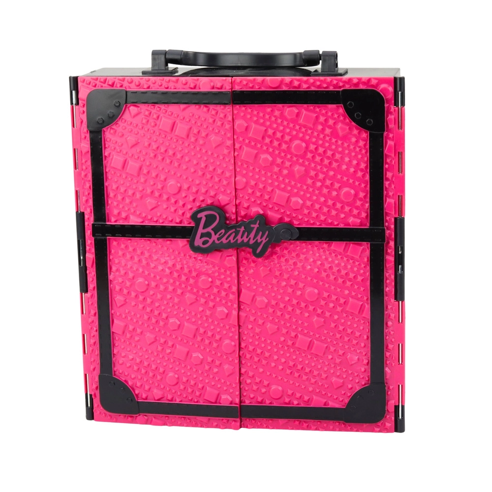Il guardaroba pieghevole rosa combina una casetta e un armadio portatile per bambole. Una volta aperto, offre uno spazio ordinato con ripiani, cassetti e appendini che stimola la creazione di outfit e il mantenimento dell’ordine. Include una grande bambola (circa 30 cm) e un set di eleganti abiti, scarpe, borsette e gioielli.