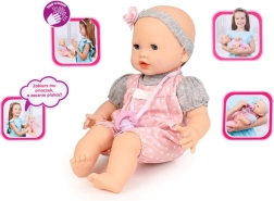 Premendo il pancino, la bambola dice “mamma”, “papà” e balbetta dolcemente. Se viene scossa, avvia una canzoncina allegra e muove la boccuccia. Inserendo il ciuccio emette suoni realistici di suzione e balbettio, mentre togliendolo piange. In posizione sdraiata chiude gli occhi e durante l’inattività balbetta piano o emette suoni del sonno. Grazie all’interruttore sul retro e alla funzione Try Me, il controllo è semplice e intuitivo.