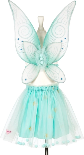 Il set comprende anche le ali da elfa con motivi scintillanti color verde menta e cristalli blu. Grazie alle bretelle elastiche sono comode da indossare e possono essere usate anche separatamente per altri travestimenti. Il costume è ideale per carnevale, feste a tema, servizi fotografici e giochi di fantasia in casa.