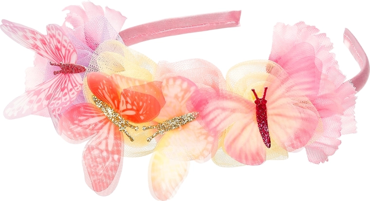 Il delicato cerchietto da ragazza Souza Lilyanne, rivestito in raso, incanta con decorazioni floreali in tulle e farfalline in tessuto con glitter. È leggerissimo e confortevole per un uso quotidiano, grazie alla larghezza di 1 cm che non stringe, ed è perfetto per feste e outfit di tutti i giorni.