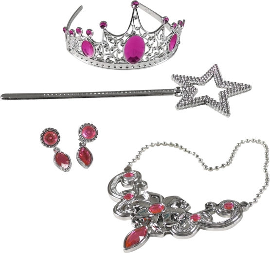 Trasformati in una principessa incantevole in un attimo! Questo set include tutto il necessario per travestimenti magici: corona argentata, bacchetta magica, collana elegante e orecchini scintillanti. Le pietre rosa donano al set un aspetto fiabesco – ideale per carnevale, feste di compleanno e gioco della principessa a casa.