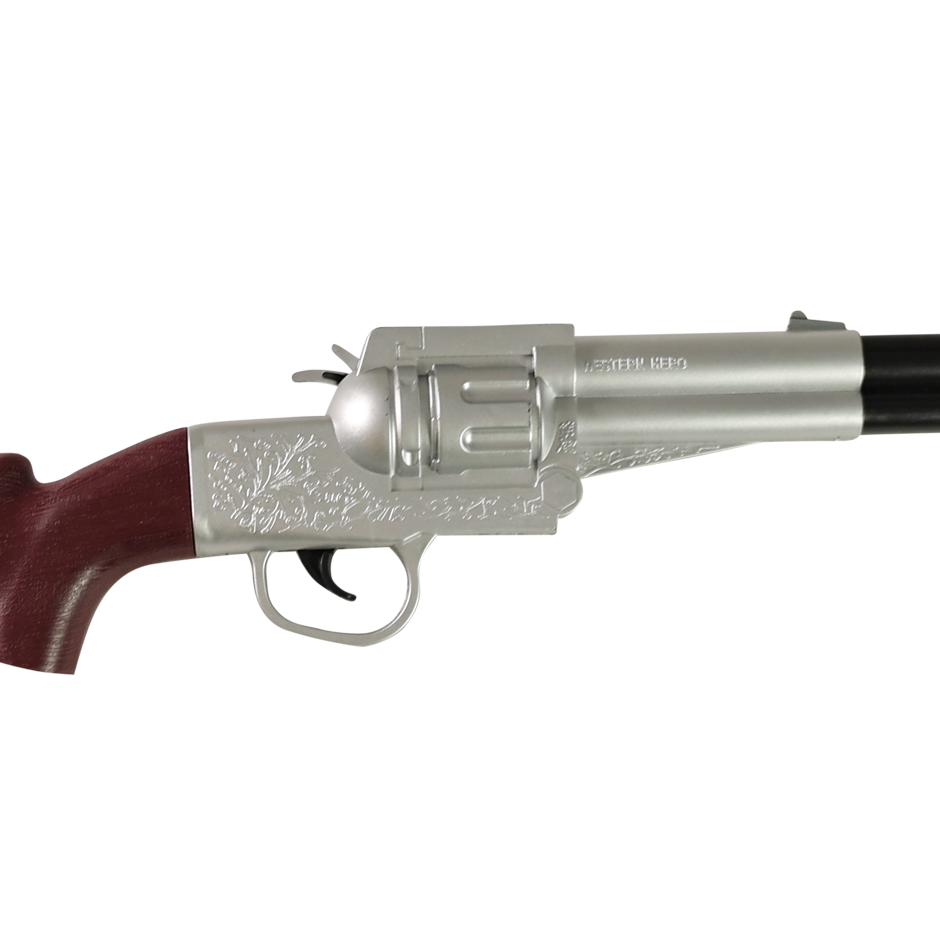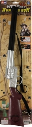 Diventa un eroe del selvaggio West con questo elegante fucile da cowboy lungo 71 cm. Grazie a un meccanismo intelligente emette, alla pressione del grilletto, un suono di sparo realistico senza bisogno di batterie. Ideale per carnevali, giochi per bambini e costumi a tema sceriffo o cowboy.