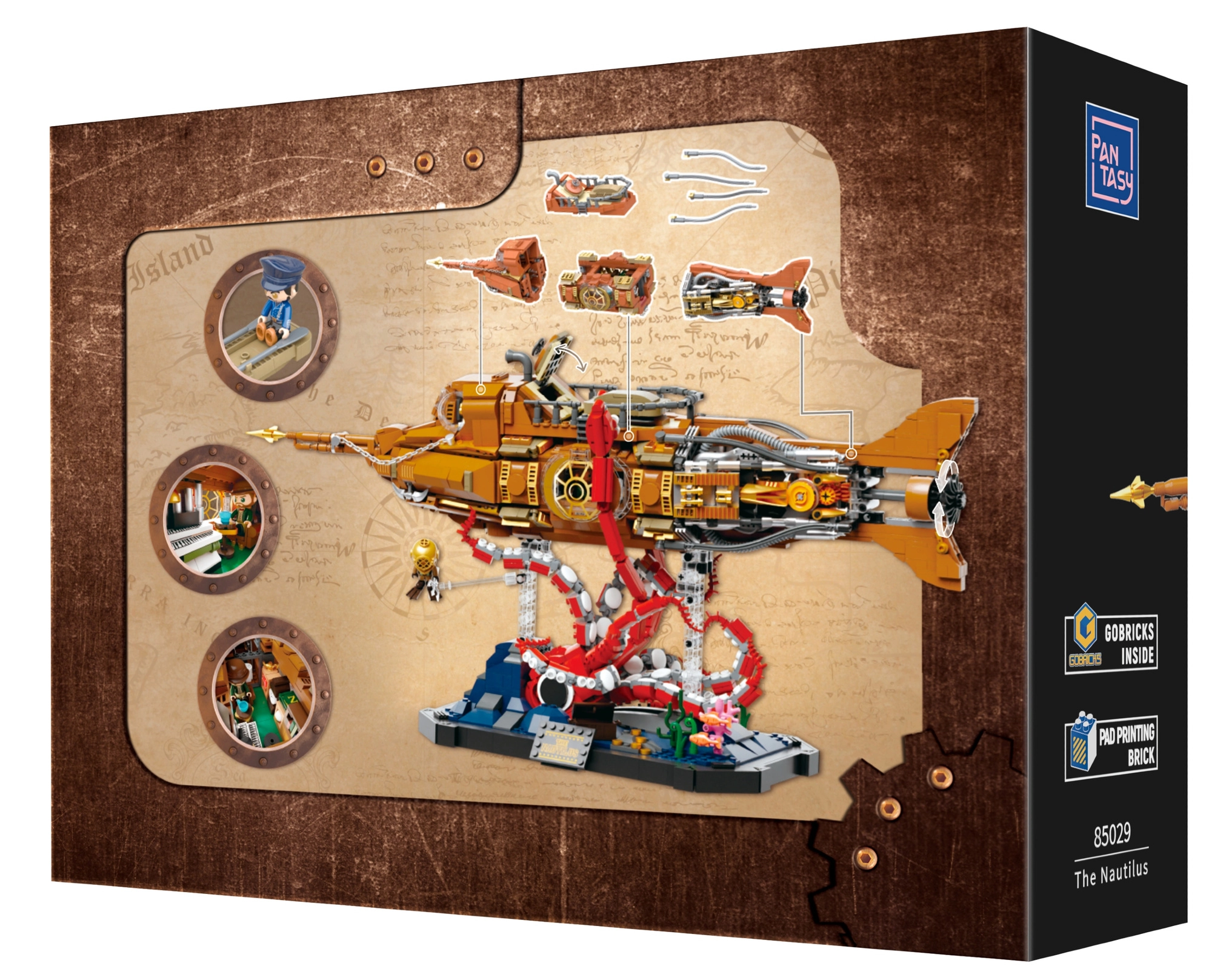 Lo scafo è suddiviso in cockpit, salone e sala macchine. L'accesso facilitato all'interno aumenta la giocabilità e permette di scoprire i dettagli del Nautilus steampunk.