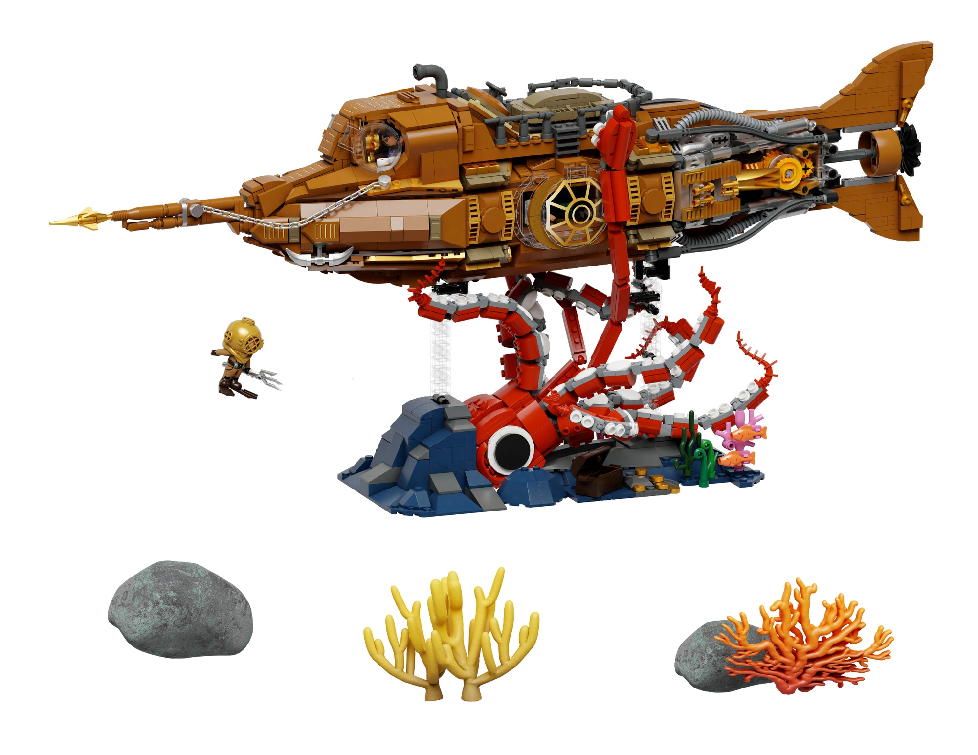 Il set include tre minifigure – il capitano, il professore e il subacqueo – per creare storie e avventure personali. Grazie alla progettazione accurata sviluppa pazienza, creatività e concentrazione e, una volta completato, diventa un pezzo di spicco in qualsiasi collezione.