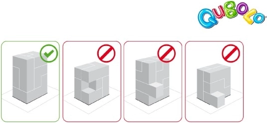 Regole semplici e grande divertimento rendono Qubolo il gioco ideale per bambini e adulti. È progettato per 1-2 giocatori, o anche fino a 4 se hai due set di pezzi di gioco. Il tempo di gioco approssimativo è di 10 minuti.