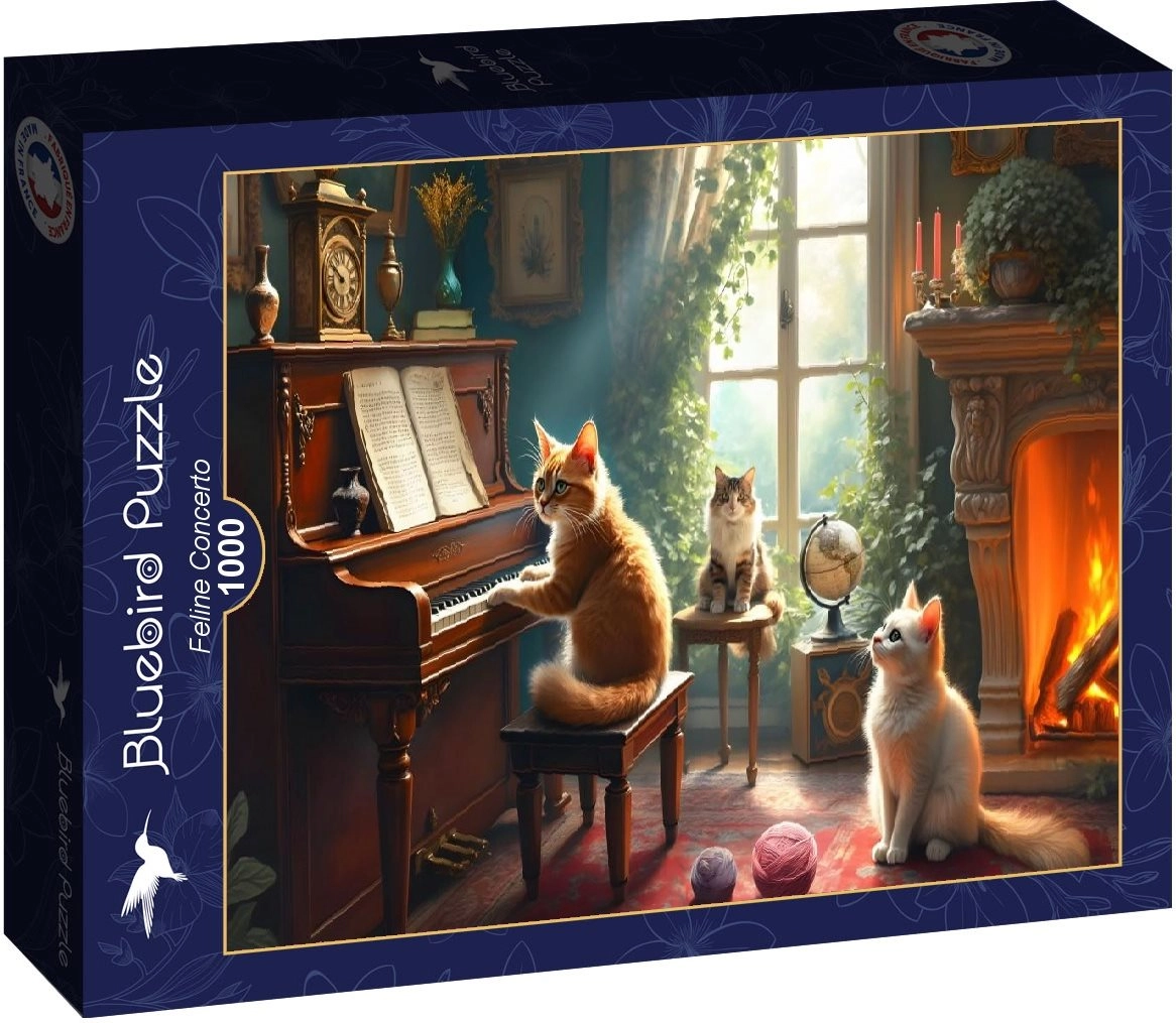 Goditi relax e divertimento con il puzzle Bluebird – Concerto felino da 1000 pezzi. Ideale per gli amanti dei gatti e dei puzzle, offre stampa precisa, tagli accurati e una bellissima illustrazione adatta a essere incorniciata.