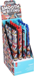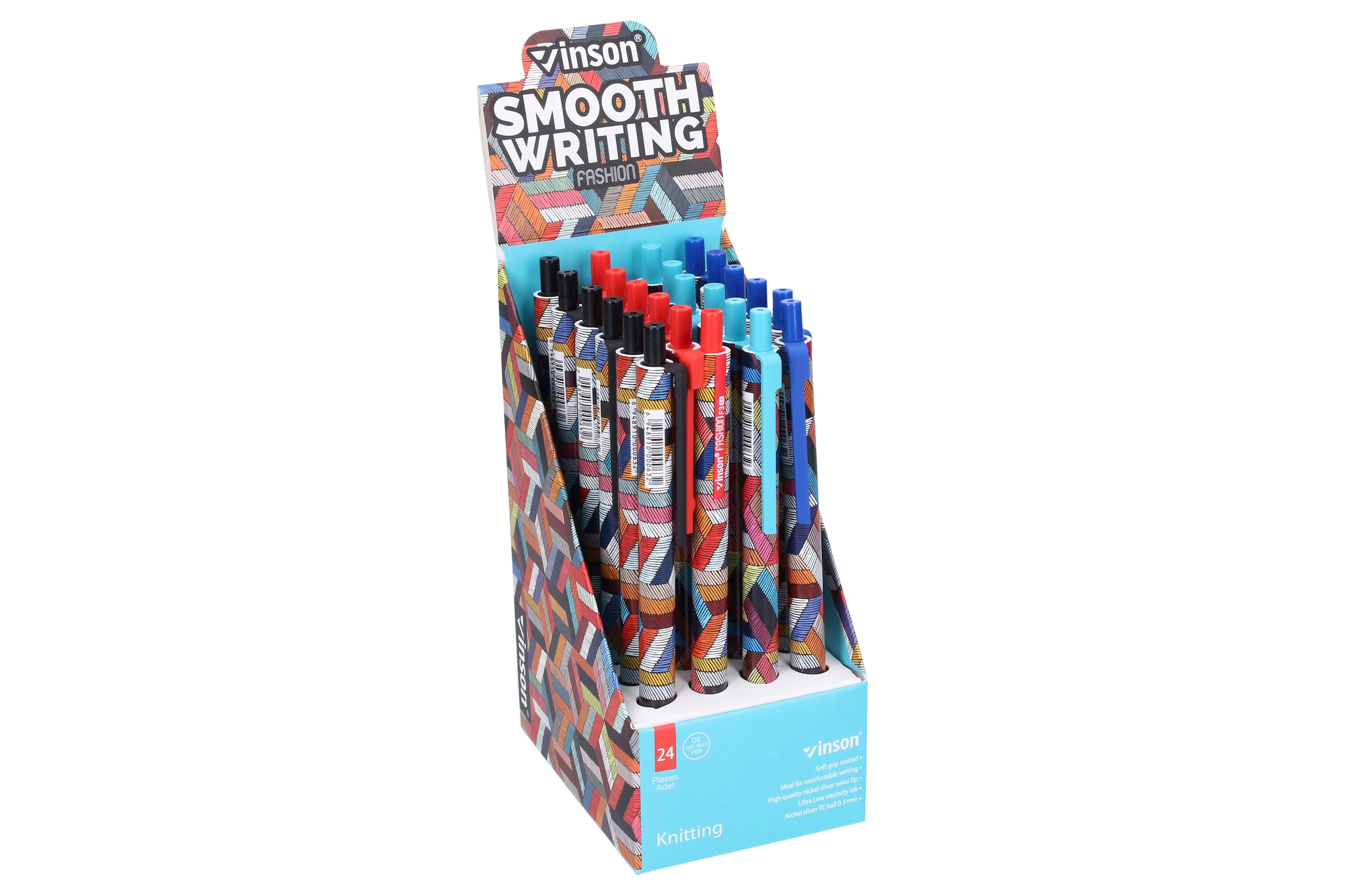 Puoi scegliere tra 4 varianti di colore del cappuccio – nero, rosso, azzurro chiaro e blu – per abbinare la penna al tuo stile o alla tua organizzazione. Confezionata in 24 pezzi in display box, adatta a negozi, uffici e scuole.