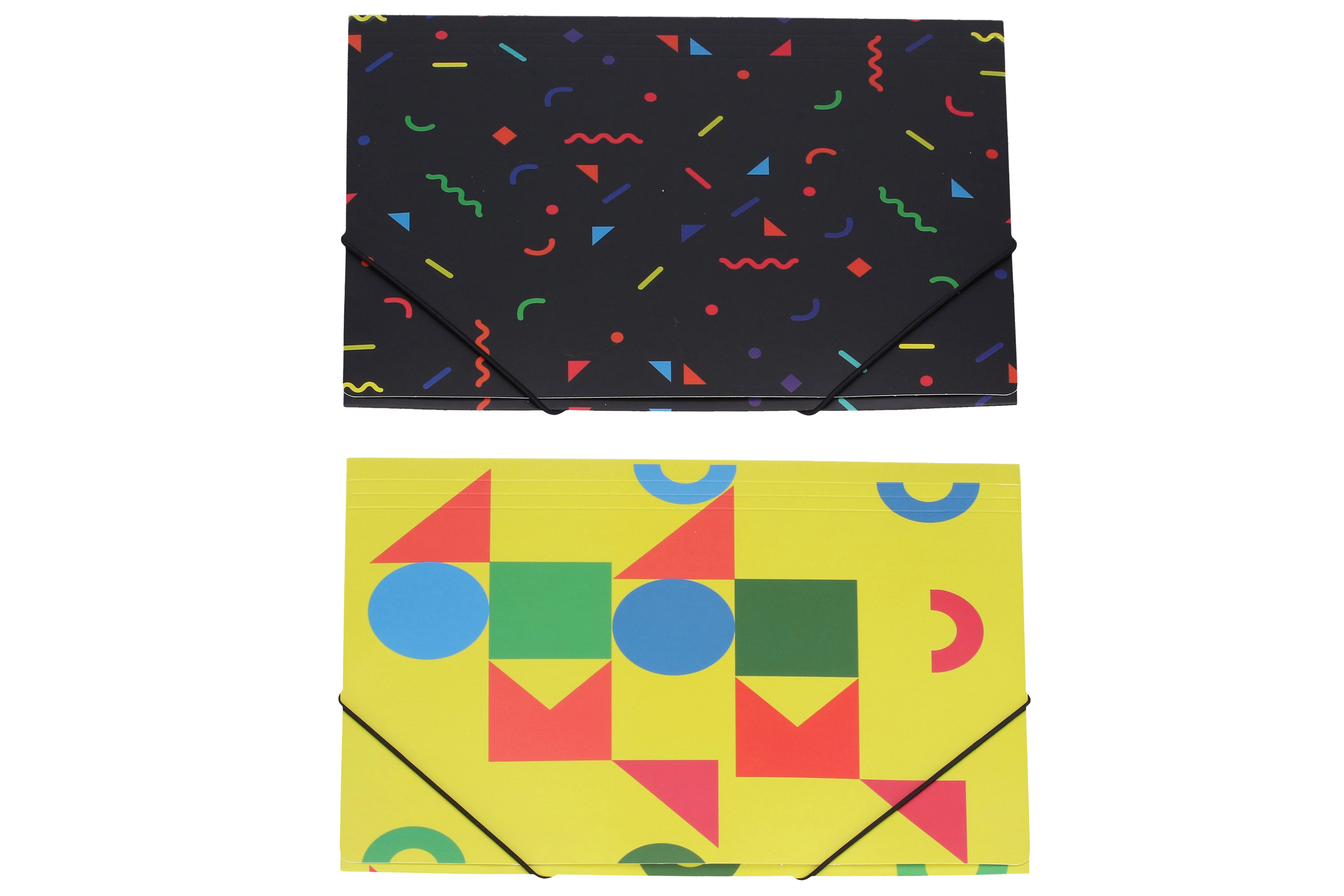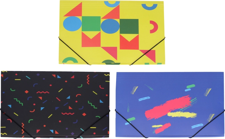 Pratica cartellina con elastico nelle dimensioni 31,4 × 23,5 cm che mantiene i documenti al sicuro. Disponibile in mix di colori, ideale per scuola, ufficio e viaggi.