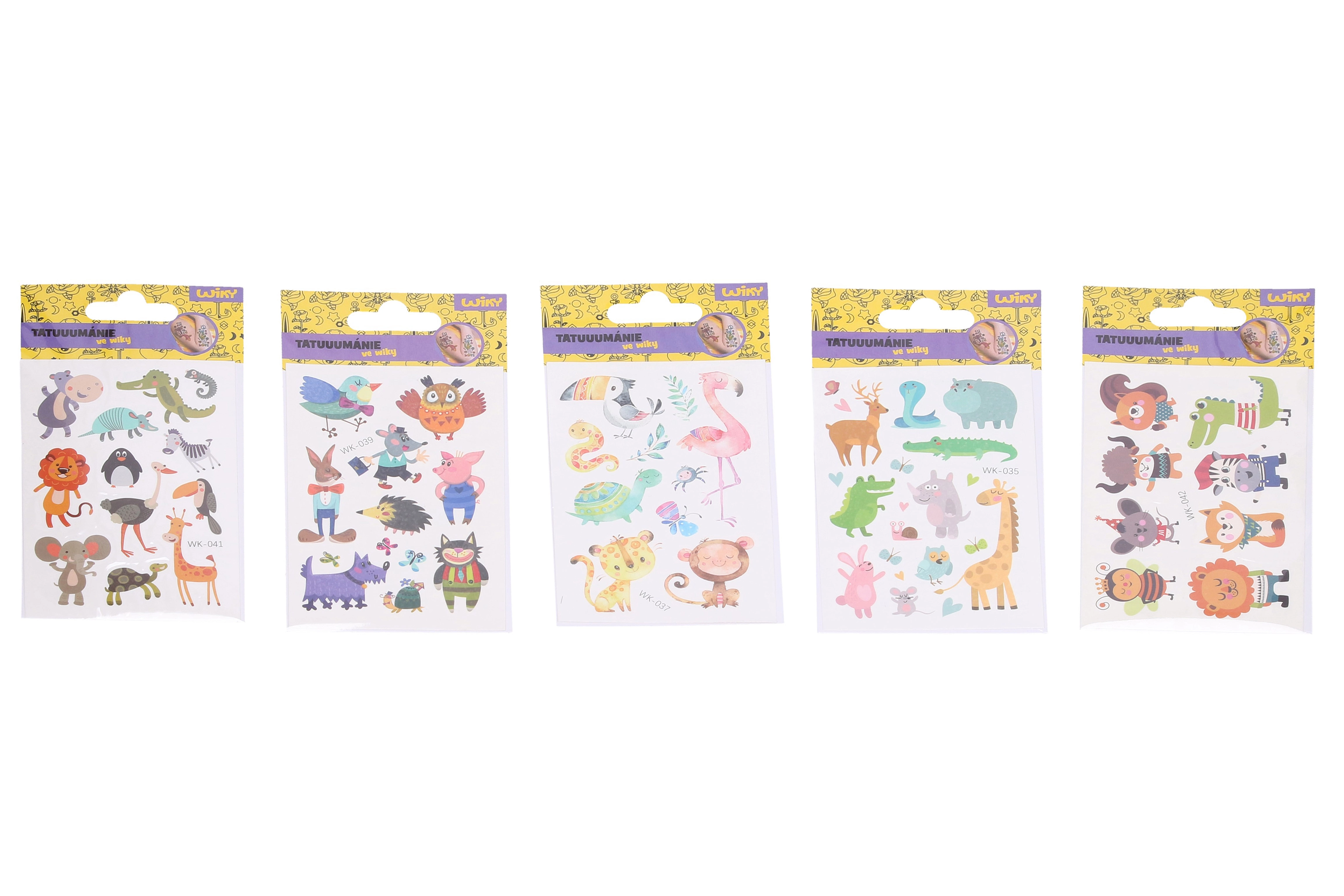 Ravviva feste per bambini, campi estivi o weekend in famiglia con allegri tatuaggi adesivi con animali. Grazie al pratico formato 7,5 × 11 cm, i motivi si trasferiscono facilmente sulla pelle e durano diversi giorni. Un mix di adorabili soggetti animali che conquisterà i piccoli amanti della natura.