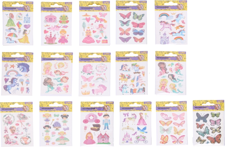 Ravviva il tuo stile con tatuaggi temporanei nel formato 7,5 × 11 cm. L’ampio mix di motivi entusiasmerà gli amanti dei temi fiabeschi e naturali – dalle delicate fate e sirene fino a dolci unicorni ed eleganti farfalle. Gli stickers si applicano con facilità e si eliminano gradualmente dalla pelle.