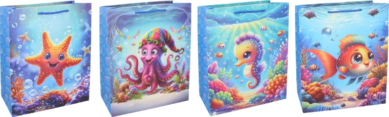 La borsa regalo alla moda in misura L farà felice ogni piccolo festeggiato. Offre dimensioni pratiche 30 × 42 × 12 cm, struttura robusta e motivi per bambini in 4 varianti – ideale per confezionare regali più grandi.
