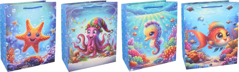 Adorabile borsa regalo per bambini in misura M con dimensioni 26 × 32 × 10,5 cm, ideale per confezionare regali di compleanno, onomastici e feste. Offre 4 varianti allegre e una struttura robusta per un trasporto sicuro.