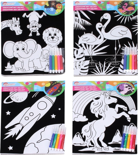 Questo set di immagini in velluto è ideale per sviluppare creatività, pazienza e motricità fine. La speciale superficie velvet (vellutata) evidenzia le linee del motivo e aiuta a mantenere il colore nel punto giusto. Grazie ai pennarelli inclusi, puoi iniziare a creare subito, senza bisogno di acquistare altri accessori.