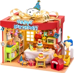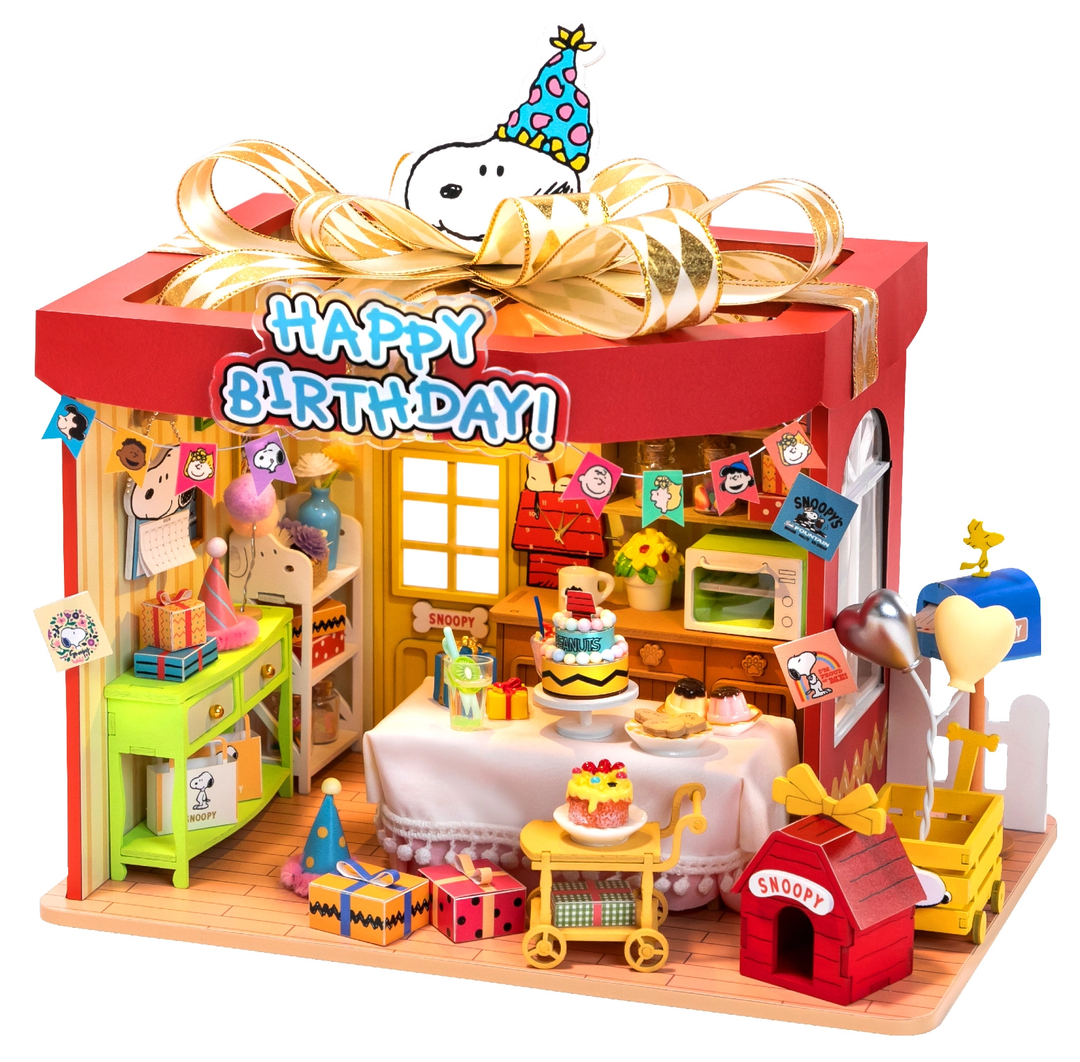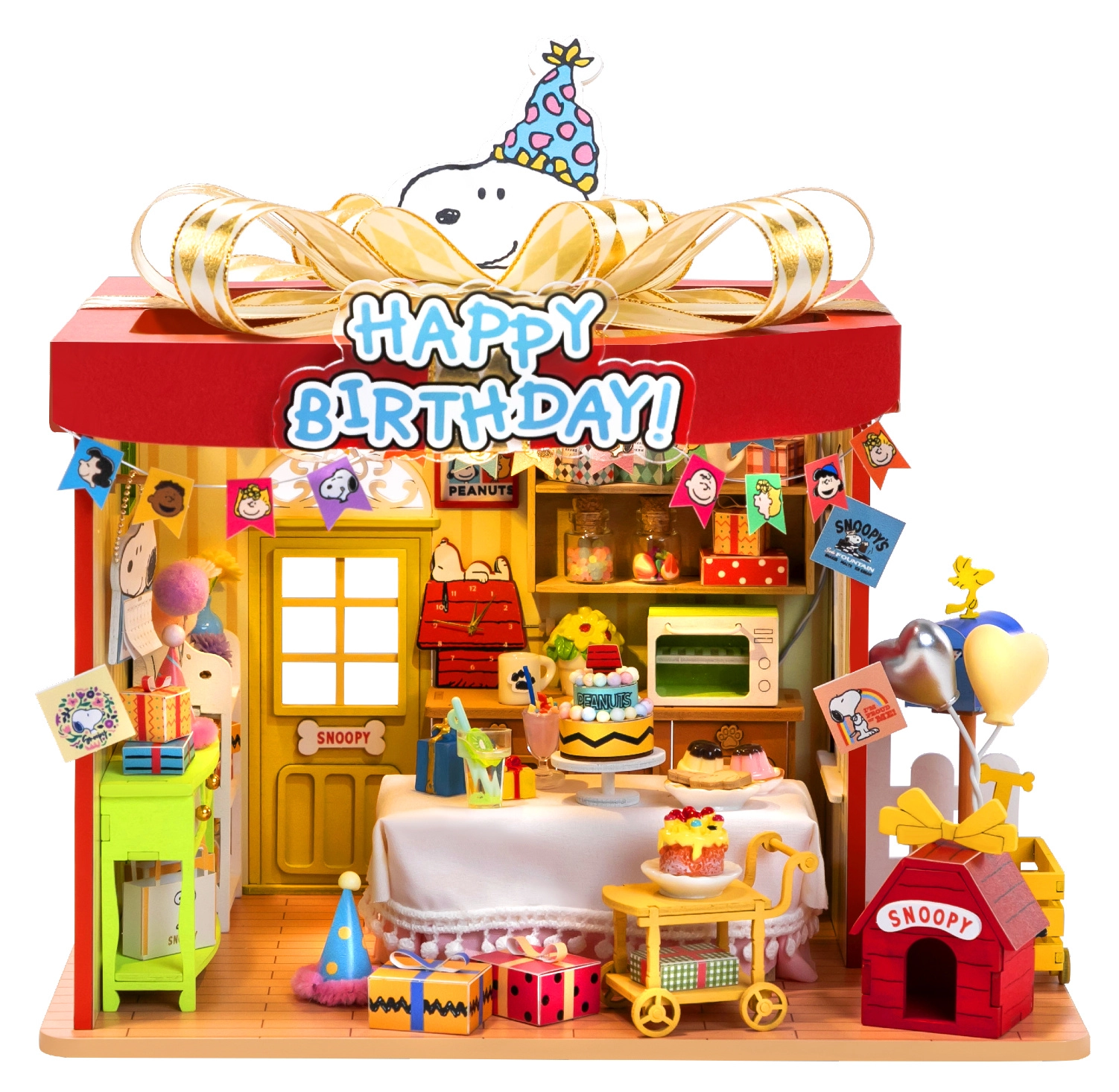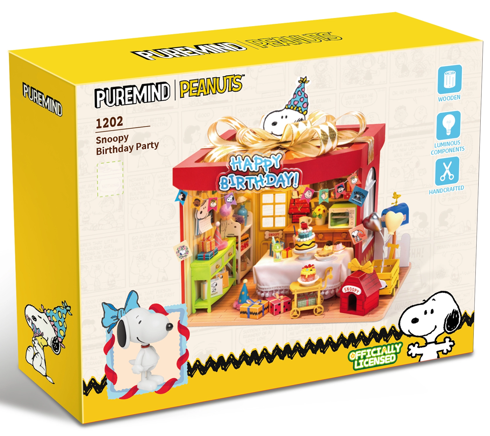 Scopri l'incantevole scena di una festa di compleanno con SNOOPY nel puzzle 3D in legno con licenza ufficiale di Puremind. Questo modello unisce costruzione creativa, lavorazione dettagliata e illuminazione LED, risultando ideale sia come hobby rilassante sia come decorazione di stile per la stanza o lo scaffale.