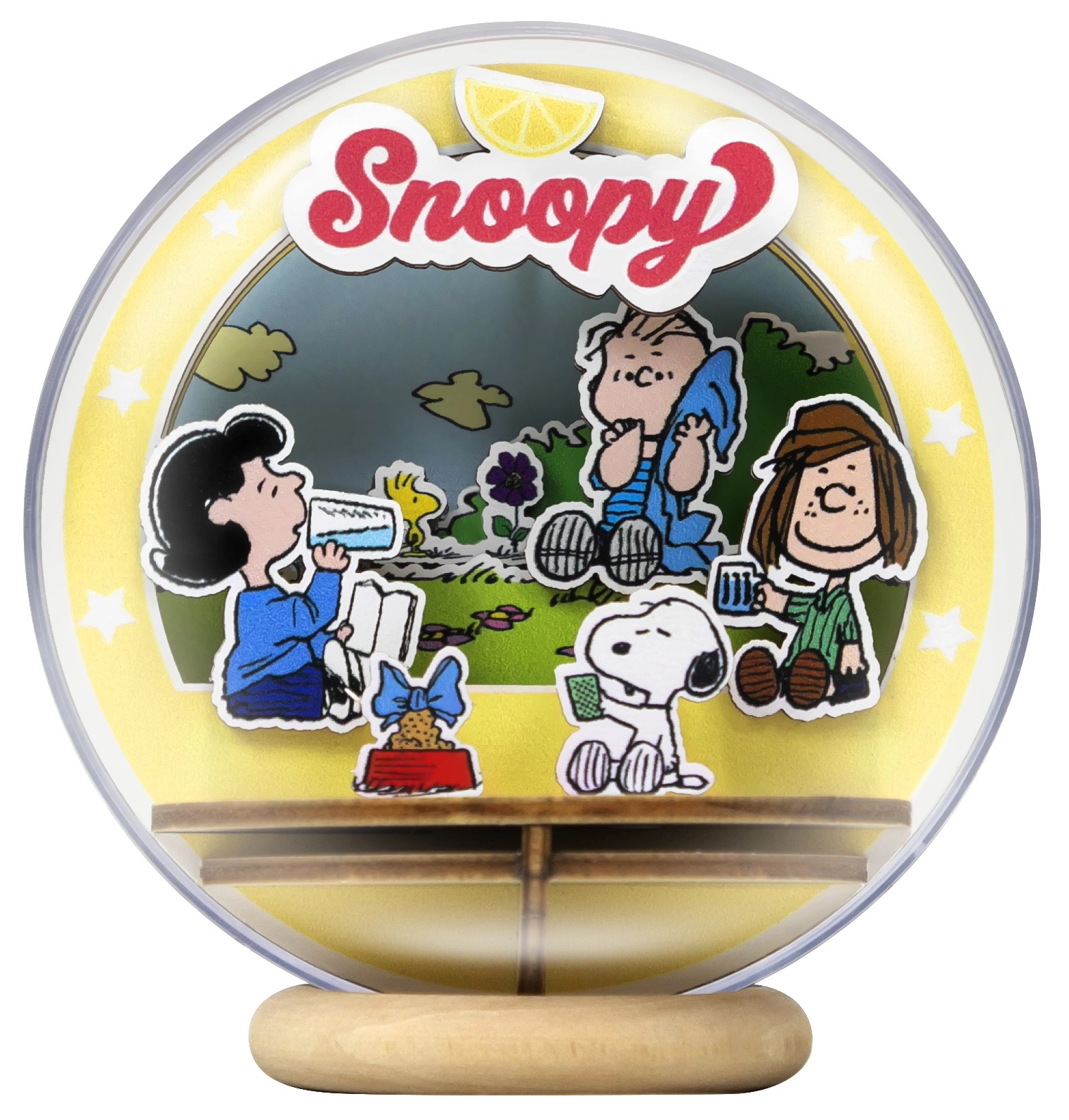 Questo set DIY con licenza combina pezzi in legno tagliati con precisione con un'elegante cupola acrilica per creare un'affascinante scena di picnic di Snoopy e dei suoi amici al parco. Il modello si distingue per la lavorazione dettagliata, la piacevole palette cromatica e la composizione spaziale che dona vivacitá e profondità all'intera scena.