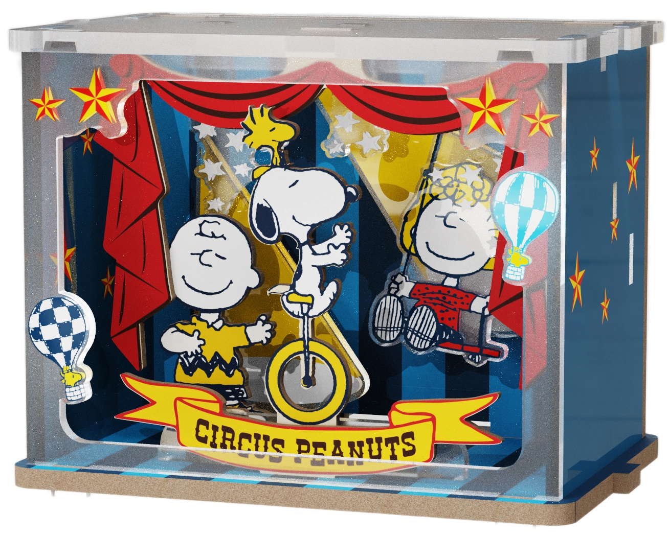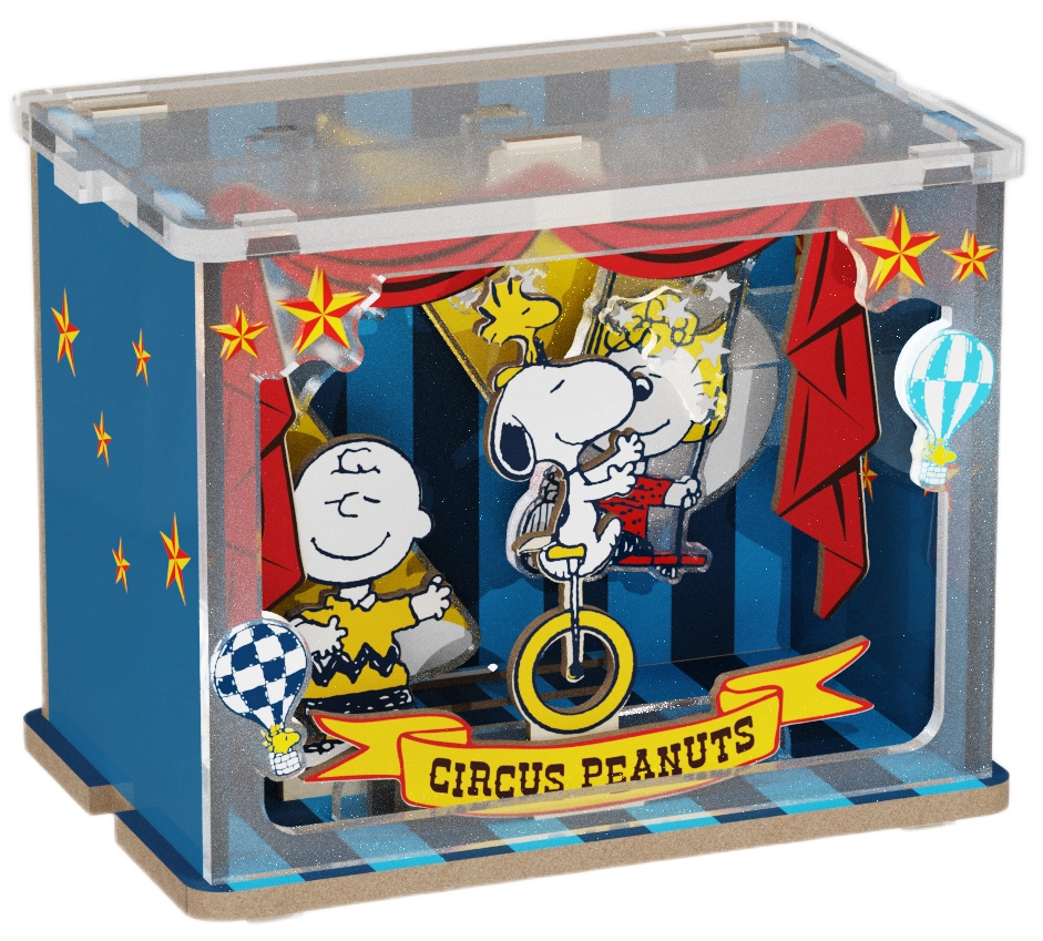 Scopri il kit in legno con licenza ufficiale con i personaggi amati Snoopy e Woodstock. La scena “Talent Show” cattura le luci del palco, l’allestimento circense e l’atmosfera giocosa dello spettacolo. I pezzi che combaciano alla perfezione garantiscono un montaggio semplice e una composizione finale robusta, da esporre con orgoglio.