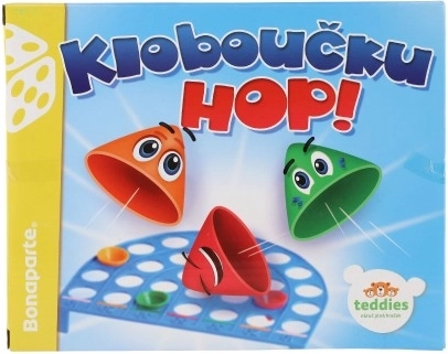Le strisce di gioco sono contrassegnate con i punti e quando il cappellino cade in un foro nella striscia dello stesso colore, i punti vengono raddoppiati. Le regole sono intuitive, quindi potete iniziare a giocare subito. Kloboučku, hop! sviluppa la coordinazione occhio–mano, la motricità fine e la concentrazione, e intrattiene per molti minuti.