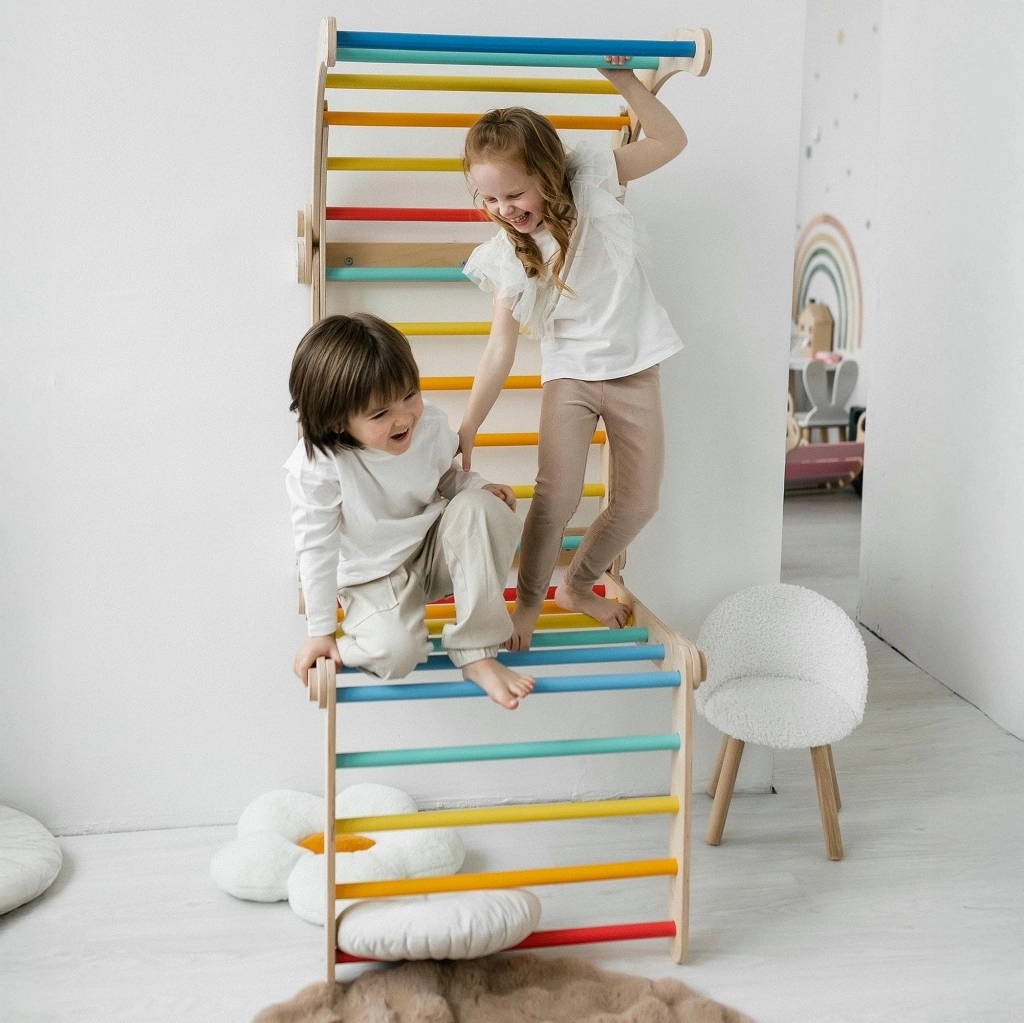 Trasforma la cameretta in un parco giochi sicuro con le spalliere multifunzionali BUSYKIDS. Questo robusto set da arrampicata in multistrato di betulla offre arrampicata, dondolio, sospensioni e giochi di equilibrio, favorisce lo sviluppo della motricità fine e grossa e, grazie alla configurazione variabile, cresce insieme al bambino. Portata 100 kg, pioli colorati e bordi levigati per massima sicurezza e divertimento.