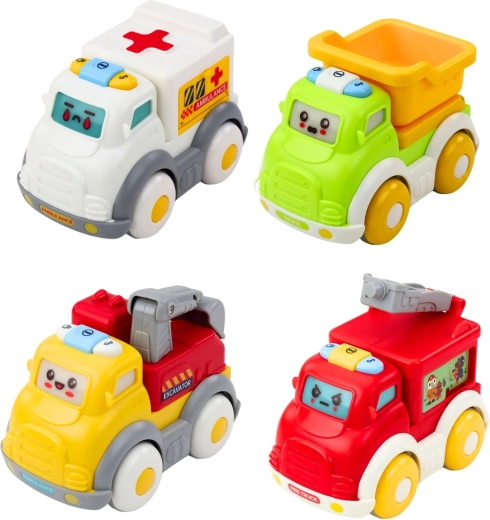 Scopri un set divertente per i più piccoli: quattro colorate macchinine cittadine facili da afferrare dalle mani dei bambini, con trazione meccanica a spinta (push-and-go), luci e suoni e parti mobili. Sicure, resistenti e ideali per sviluppare motricità fine, coordinazione e fantasia.