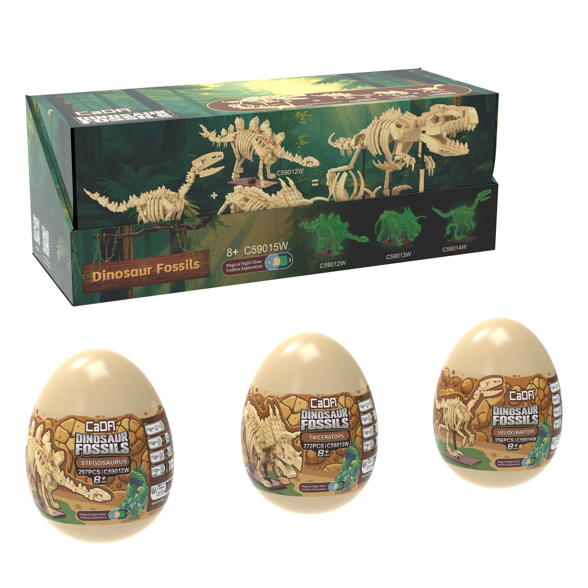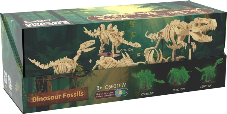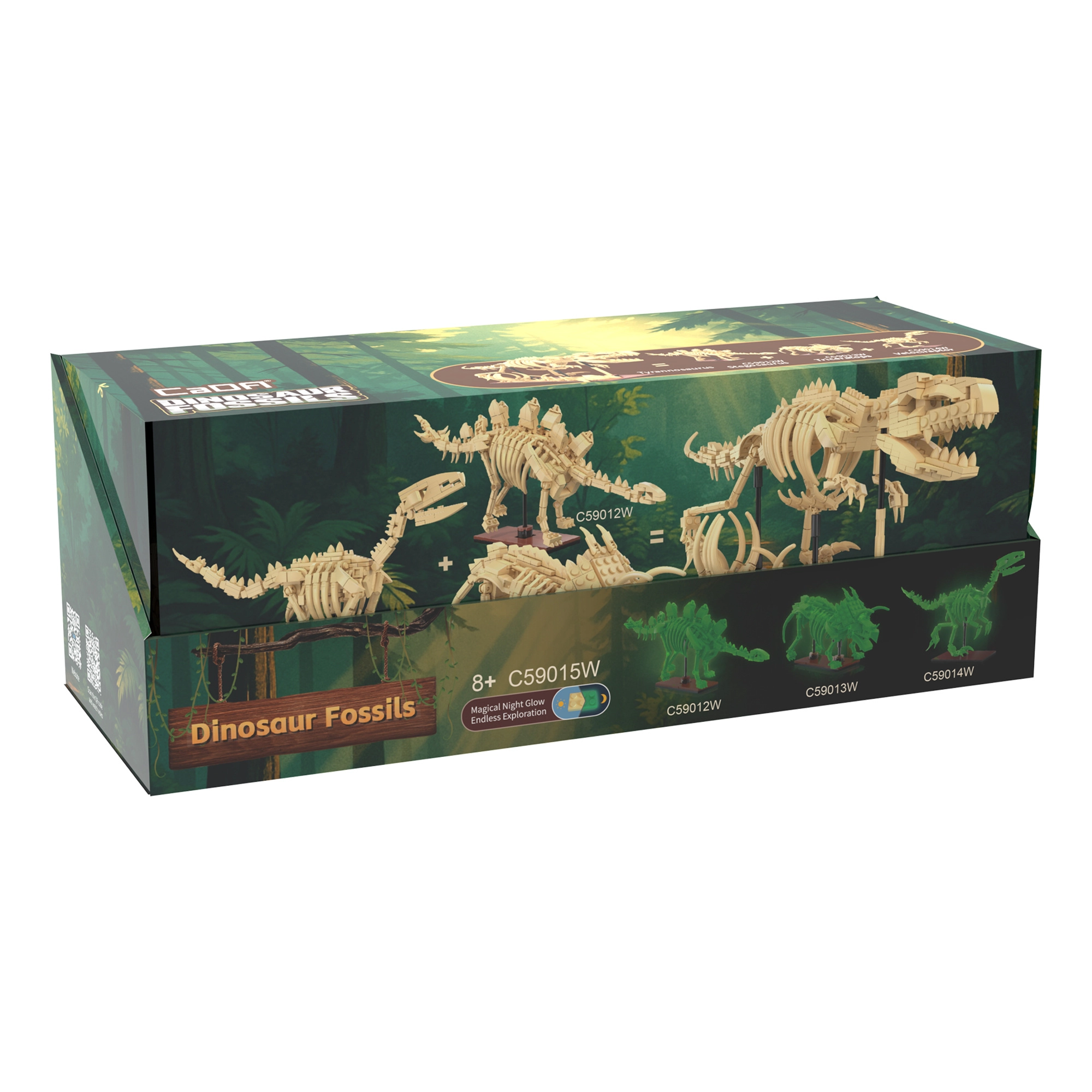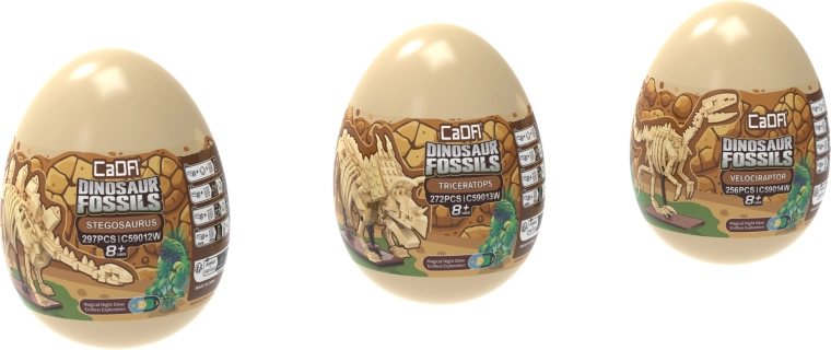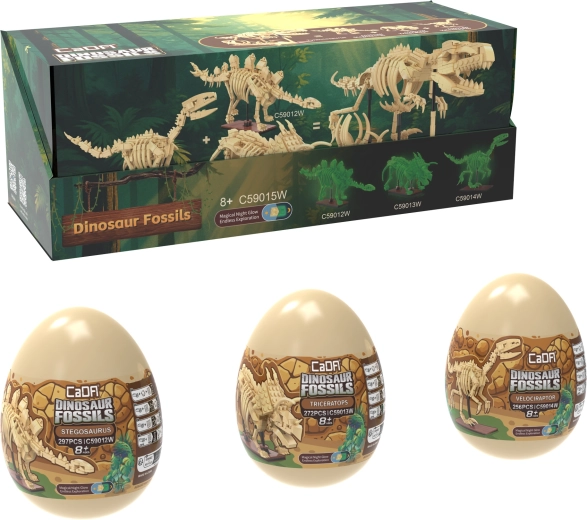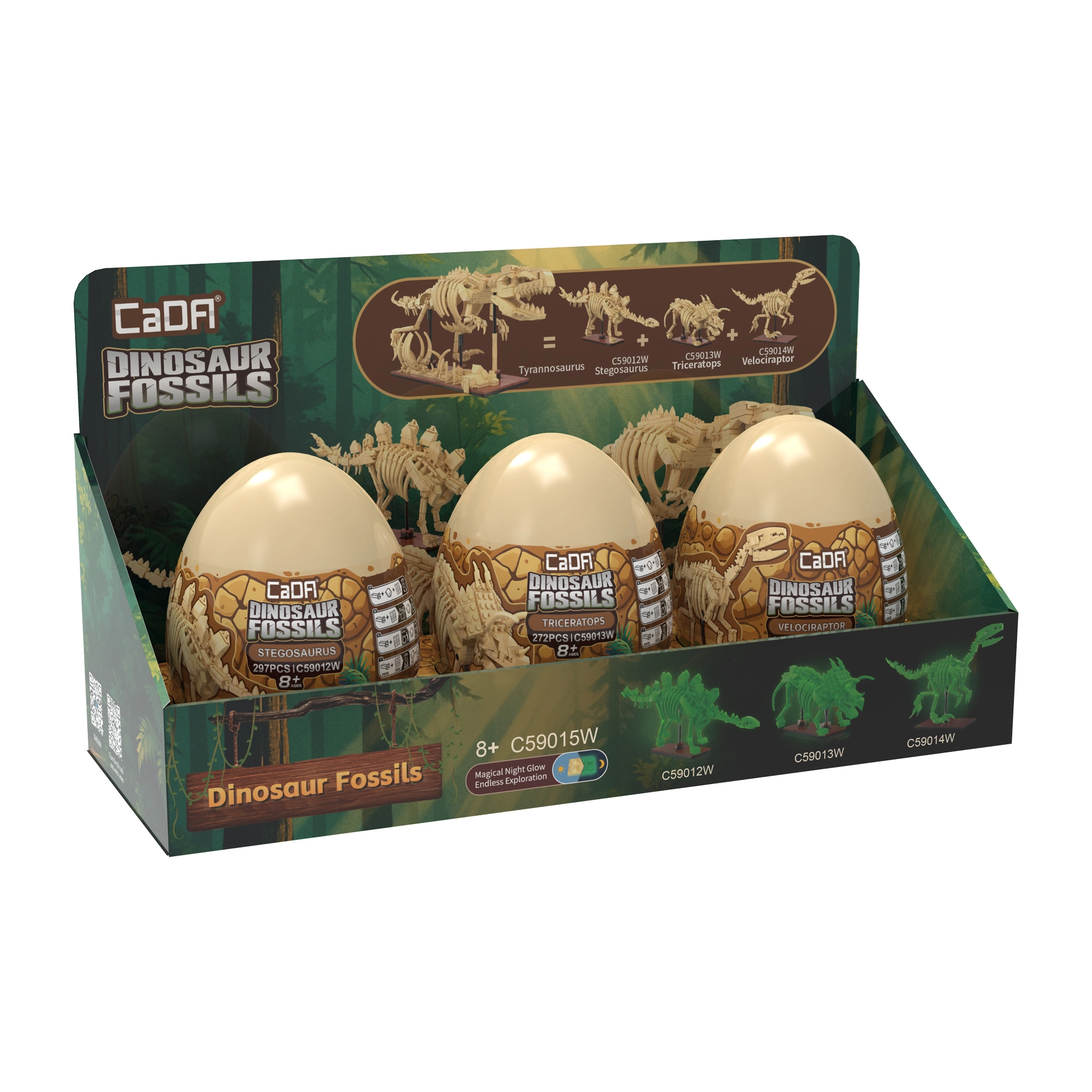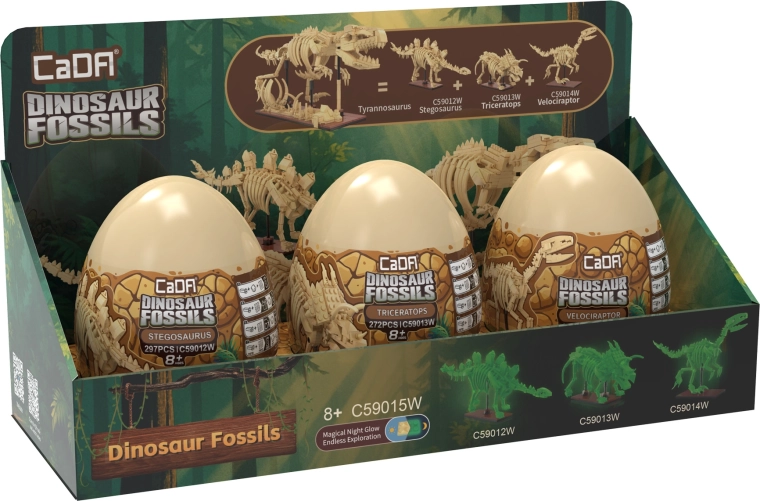 Scopri l’affascinante mondo dei dinosauri con il set di costruzione CaDA Dinosaur Fossils. Assembla tre modelli scheletrici dettagliati – Triceratopo, Stegosauro e Velociraptor – e poi combinagli per creare l’imponente TYRANNOSAURUS REX. I pezzi hanno un effetto luminoso al buio, le articolazioni sono snodate e il set include in totale 825 pezzi compatibili in pratiche “uova” da collezione.