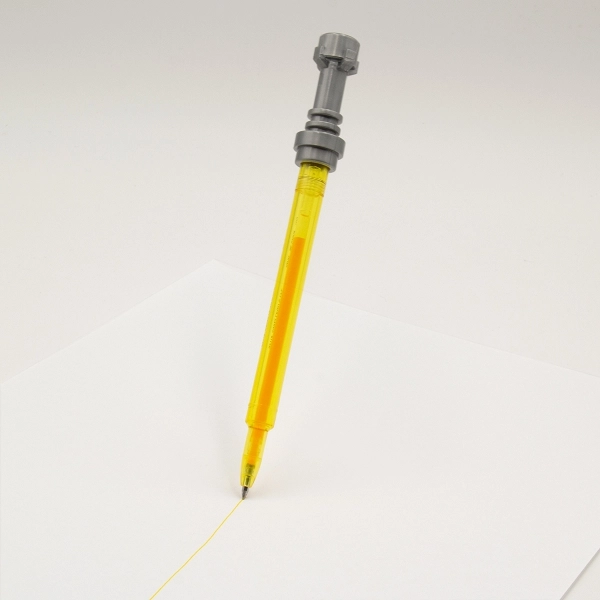 Trasforma la scrittura quotidiana in un'avventura galattica con questa stilosa penna gel a forma della leggendaria spada laser della saga STAR WARS. Punta fine da 0,7 mm e inchiostro gel giallo per una scrittura fluida e pulita, in tinta con il colore del corpo penna.