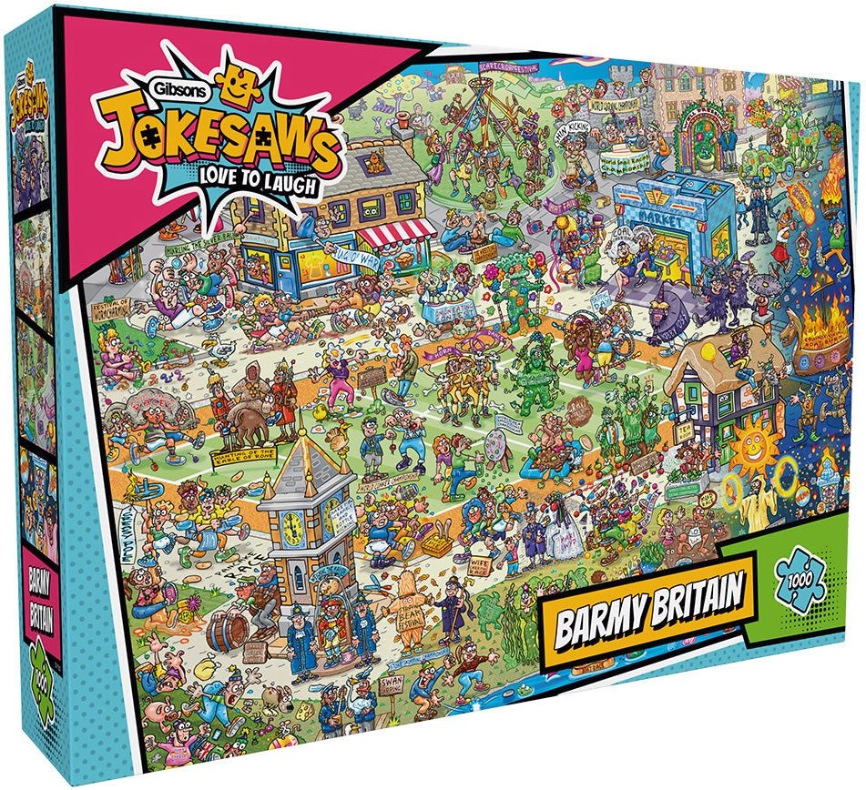 Scopri l’umorismo brillante e i colori vivaci del motivo Barmy Britain in questo puzzle perfettamente realizzato dal brand GIBSONS. Grazie ai 1000 pezzi tagliati con precisione, il puzzle è ideale per utenti esperti e principianti abili che cercano una sfida piacevole e una qualità superiore.