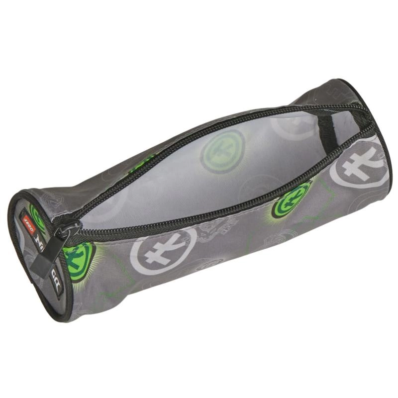 Questo astuccio dallo stile moderno, in colore grigio con accenti verdi e bianchi, colpisce per il design contemporaneo e la fattura pratica. Grazie alla forma cilindrica contiene facilmente matite, pastelli, penne e piccoli articoli scolastici. La zip di qualità assicura che tutto rimanga al proprio posto in sicurezza.