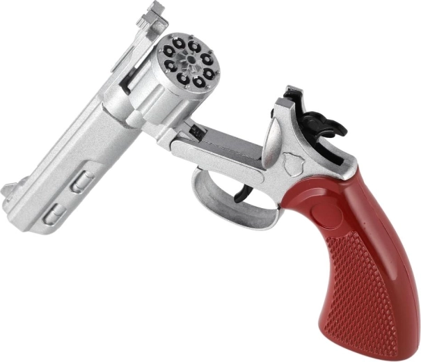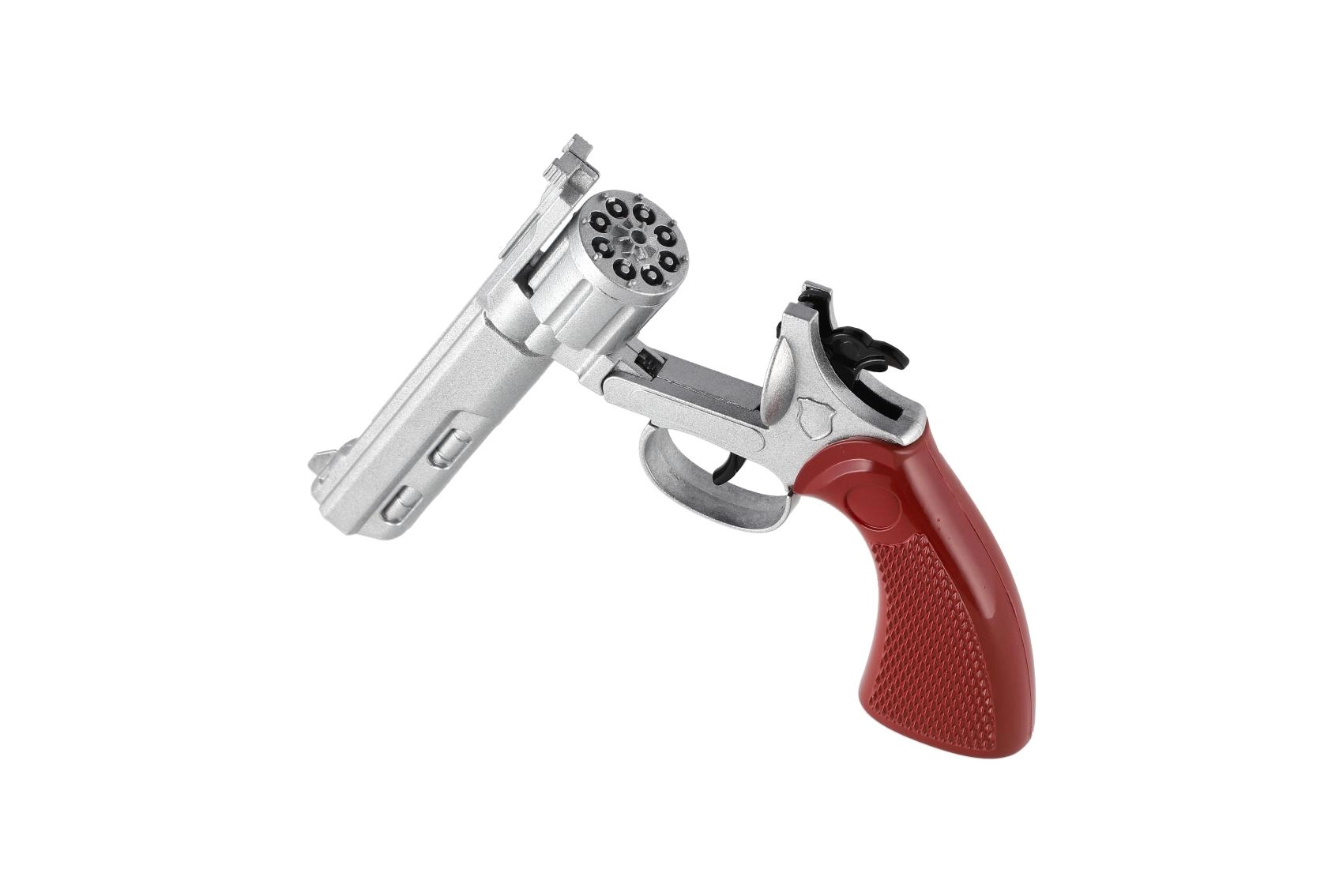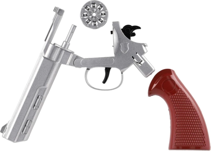 Questo elegante revolver da 22 cm offre un look autentico e un funzionamento affidabile per il gioco dei bambini. Il corpo in metallo dona realismo, mentre l’effetto sonoro con le capsule da 8 colpi amplifica l’atmosfera d’avventura. Grazie all’impugnatura ergonomica, la pistola è comoda da tenere anche durante sessioni più lunghe.